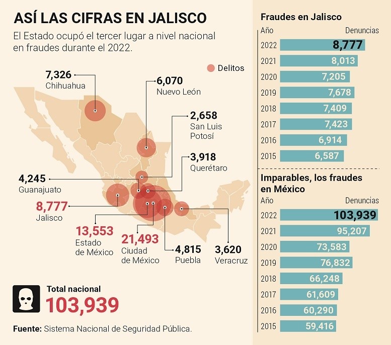 Los casos detonados por las empresas Asesores Jurídicos Profesionales (AJP), Green Oceans Inc. y Creso provocaron que el año pasado cerrara con un récord de fraudes en Jalisco (recientemente se detectaron otras tres compañías similares: Financiera Bicentenario, DDC y Novus).En 2018, cuando inició la presente administración estatal, se documentaron siete mil 409 víctimas de este delito ante la Fiscalía del Estado; sin embargo, en 2022 se registró la cifra inédita de ocho mil 777. Esto de acuerdo con datos del Secretariado Ejecutivo del Sistema Nacional de Seguridad Pública (SESNSP).El factor común en estas financieras es que atraen con ofertas de rendimientos que no se ofrecen en los bancos. Luego viene el delito.La Condusef reitera a la población que debe evitar mecanismos informales de ahorro e inversión, como tandas, guardar dinero en efectivo y entregarlo con la promesa de retribuciones con altos porcentajes de retorno o ser parte de las conocidas “pirámides”.El año pasado, Jalisco cerró como el tercer Estado con más fraudes, solamente superado por Ciudad de México (21 mil 493) y Estado de México (13 mil 553).La Condusef acentúa que las llamadas inversiones “milagro” se hacen a través de empresas o personas no autorizadas, quienes ofrecen rendimientos fuera del mercado y no mencionan los riesgos. Por eso pide investigar que las empresas estén incluidas en el Sistema de Registro de Prestadores de Servicios Financieros.Además de los fraudes, otro delito que aumentó el año anterior en Jalisco fue el de extorsión. Mientras en 2021 se reportaron 565, en 2022 hubo 663. Tan solo por los fraudes de la financiera Asesores Jurídicos Profesionales (AJP), dados a conocer en agosto del 2022, suman mil 285 personas afectadas, informó la Fiscalía de Jalisco, que alcanzan un monto de mil 683 millones 626 mil pesos.Por la empresa Green Oceans, el último corte sumaba 154 víctimas, cuyas afectaciones ascienden a 174 millones 762 mil pesos. Por este caso, ya fue vinculado a proceso Alejandro “A”, presunto dueño de tal empresa.Por último, se encuentra Creso, otro fraude que se dio a conocer a inicios de diciembre pasado, por el cual hay al menos 24 afectados que denunciaron ante la Fiscalía estatal. Perdieron 296 millones 573 mil pesos, pero no hay detenidos.Las afectaciones han sido millonarias, sin embargo, en éstas no se contabilizan las pérdidas relacionadas con el caso dado a conocer en noviembre pasado, correspondiente a Bicentenario Grupo Financiero, empresa que ofreció a 20 víctimas el financiamiento de vehículos a precios económicos a partir de un enganche, pero que poco después desapareció.Especialistas envían un mensaje a la población en general para que eviten caer en las redes de empresas o personas no registradas ante la Comisión Bancaria o la Comisión Nacional para la Protección y Defensa de los Usuarios de Servicios Financieros.La alerta es que ofrecen altos intereses por la inversión de su dinero, pero no hay un sistema que pueda ofrecer beneficios por arriba de lo que ofrecen, por ejemplo, en las instituciones bancarias. Voz del experto Guadalupe Torres Pulido, académica de la UPEste tipo de fraudes, explicó por su parte la profesora de la Facultad de Empresariales de la Universidad Panamericana, Guadalupe Torres Pulido, se sustenta en el Sistema Ponzi, que se desarrolla cuando los estafadores consiguen pagar los intereses de una inversión mediante el mismo dinero invertido o con el dinero de nuevos inversores.Lo anterior en un inicio puede dar gran rentabilidad, sin embargo, los beneficios terminan cuando deja de haber inversores, es decir, cuando deja de entrar dinero al sistema.Por ello, asegura la especialista, es recomendable que al invertir, la persona dude de toda aquella persona que ofrezca tasas de interés superiores a las de las instituciones bancarias, y que antes de invertir, garantice que la empresa o persona esté regulada por la Comisión Nacional Bancaria y por la Comisión Nacional para la Protección y Defensa de los Usuarios de Servicios Financieros, pues es la única forma de garantizar que son legales. También dijeron que es necesario comenzar a interesarse más por conocer sobre educación financiera, o por lo menos, por conocer y asesorarse con especialistas sobre lo que ofrece una institución financiera al invertir o pedir un préstamo, ya que se trata de los ahorros y el esfuerzo, quizás de toda una vida, lo que está en riesgo, y que de ser víctimas de un delito como lo es el fraude, es muy probable que no se recupere.Este tipo de fraudes se pueden evitar consultando las fuentes oficiales para tener certeza de las empresas financieras que ofrecen estos servicios. En México, para proteger a los inversionistas la regulación sobre qué empresas que pueden obtener inversiones del público se precisan en la Ley de Instituciones de Crédito. Tienen reconocimiento instituciones de crédito como bancos y demás intermediarios financieros autorizados como Casas de Bolsa. Voz del experto Antonio Sánchez Sierra, académico de la UdeGLos fraudes cometidos por al menos tres supuestas financieras a más de mil 400 personas, por afectaciones superiores a los dos mil millones de pesos (aunque se presume hay cientos de víctimas más que no han querido denunciar), tenían algo en común: sus titulares les ofrecían pagos por intereses que iban hasta el 20% de su inversión, lo cual, de acuerdo con el profesor investigador del Departamento de Estudios Fiscales del Centro Universitario de Ciencias Económico-Administrativas, Antonio Sánchez Sierra, es imposible de solventar y a todas luces se trata de un engaño.“No existen inversiones milagrosas, la gente se desborda por la ambición, por lo que le ofrecen tasas increíblemente altas que quedan fuera del rango de la razonabilidad. Había casos donde a las víctimas les ofrecían tasas de rendimiento del 84%, ni la droga les deja a los criminales esos rend