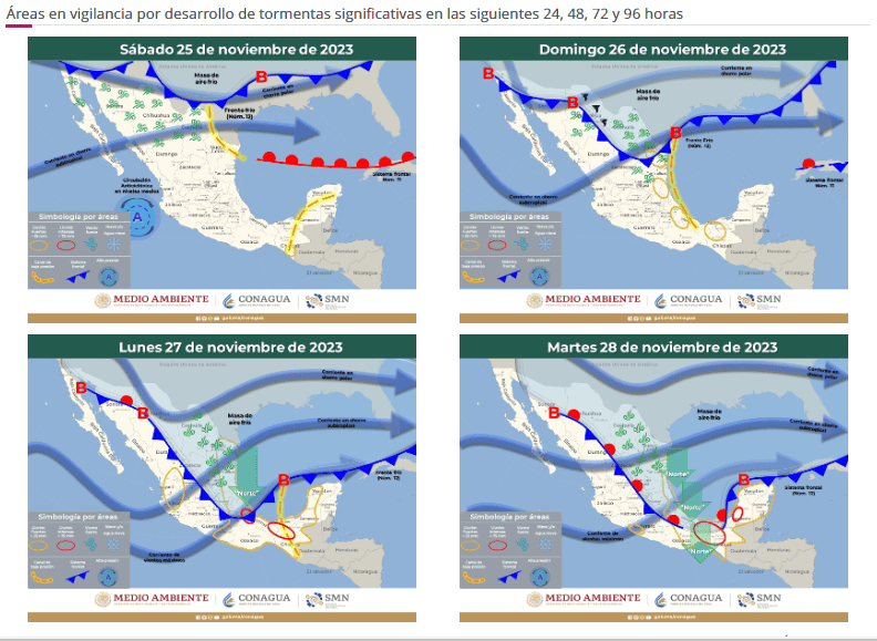 Poco a poco el calor comienza a despedirse para abrir paso al invierno. Estos días gélidos se debieron a la llegada del Frente Frío 11, el cual está saliendo, pero el Servicio Meteorológico Nacional (SMN) dio a conocer que este fin de semana un nuevo frente frío llegará a la República Mexicana.El Frente Frío número 12 llegará a todo el país, aunque habrá lugares que recientan más las bajas temperaturas. De acuerdo con el informe emitido por la dependencia gubernamental, el frente frío 12 llegará el sábado 25 de noviembre.El Frente Fío 12 se aproximará a la frontera noroeste y norte del territorio nacional, en interacción con un canal de baja presión sobre el noreste del país y las corrientes en chorro polar y subtropical ocasionarán fuertes rachas de viento con tolvaneras en las regiones mencionadas; así como probabilidad de chubascos en Tamaulipas y lluvias aisladas en Sonora, Chihuahua, Coahuila y Nuevo León. En cuanto a Jalisco, la dependencia explica que hacia la tarde puede subir la temperatura hasta los 35 grados el sábado; pero hacia la madrugada del domingo podrían descender de 0 a 5 grados en las sierras.Durante la noche del domingo 26 de noviembre, el frente frío y su masa de aire frío asociada se desplazarán sobre el noroeste y occidente del Golfo de México, por lo que se prevé chubascos y lluvias fuertes en el estado del noreste, oriente y sureste de la República Mexicana. Así como un marcado descenso de las temperaturas diurnas sobre el noroeste, norte y noreste del territorio nacional; así como evento de Norte con rachas de 50 a 70 km/h en el litoral de Tamaulipas y norte de Veracruz.MM