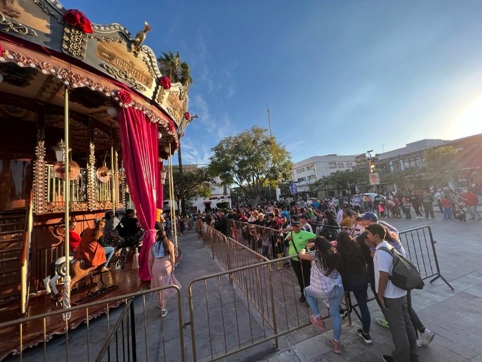En el segundo día de operaciones del Carrusel Tapatío, ubicado en el Jardín de la Reforma en el Centro Histórico de Guadalajara, niños, jóvenes, adultos mayores y público en general disfrutaron del ingreso gratuito y de las vueltas del juego mecánico.Loa tapatíos comentaron a este medio que disfrutaron del carrusel y aprovecharon para celebrar el 481 aniversario de la fundación de Guadalajara.Dayani, de 10 años, se subió en compañía de su mamá y una amiga al carrusel, a ella le gustó la imagen de la catedral en uno de los diseños.“Me pareció muy bonito, sobre todo cómo lo decoraron, la imagen de la catedral está dibujada en uno de las pinturas del carrusel, me representa como tapatía, me gustó porqué está muy grande y es de dos pisos”, señaló.Yoali, adolescente de 16 años, dijo que por fin se subió, ya que en la navidad del 2021 no pudo subirse al juego de las sillas voladoras Para esta joven lo más representativo son todas las imágenes del Centro que están en la carpa.“Está entretenido y a gusto, algo nuevo, el otro año trajeron uno diferente y en aquella ocasión no me pude subir y hoy aproveché, vine con la familia de una amiga, tienen bonitas fotografías de cómo era antes el Centro, ahora es muy diferente, me representa mucho la mujer que está en el carrusel, muy folclórica”, acotó.Doña Guadalupe Virgen, de 85 años, y su hijo Ignacio, aprovecharon para subirse al juego. A Lupita le trajó bonitos recuerdos de su infancia. “Todo me gustó mucho, me tocó en una banquita, me acordé de mi niñez, me acuerdo que brincoteaba y disfrutaba. Me acordé mucho de mi mamá ella era la que me llevaba a las ferias, me subía a todos los juegos”, manifestó.Arturo Suárez llegó desde Tonalá para dar la vuelta en el carrusel y aprovechó para llevar a su esposa también en el Día de San Valentín.“Está muy bonito todo el carrusel, me está gustando todo lo que está pasando en estos eventos de aniversario de Fundación de Guadalajara, vengo con mi esposa desde Tonalá y visitando aquí Guadalajara aprovechando el Día de la Amor y la Amistad”, dijo.