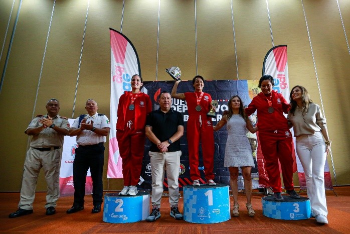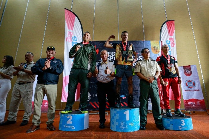 Tras una semana en que la ciudad de Guadalajara fue sede de los Juegos Deportivos de Bomberos 2023, este mediodía terminaron las competencias con clausura y carrera vertical en el Hotel Riu, donde la corporación local fue la líder en el medallero con 55 medallas en total, 15 de ellas de oro.En segundo lugar quedó Zapopan, con 34 medallas, 20 de ellas de oro; Protección Civil y Bomberos de Jalisco con 15.Sergio Ramírez López, coordinador intermunicipal de Protección Civil y Bomberos de Guadalajara y Zapopan, destacó que estos juegos sirvieron para que los rescatistas convivieran de una manera armónica fuera de las emergencias.“Ha sido una semana increíble, ha sido cansado, también han sido momentos de mucha tensión y es una semana que nos ha permitido convivir con mucha gente que convivimos pero en situaciones de emergencia en incendios, inundaciones, desastres, en la ciudad o afuera, fue todo con un ambiente de camaradería se pusieron a prueba física y mental de los equipos que forman parte de las delegaciones que estuvieron participando, tuvimos gente de diferentes parte de Jalisco, también tuvimos competidores del estado de Colima y estamos contentos porqué fue una buena participación del personal, y en siguientes ediciones se sumaran más e incluso a nivel nacional”, explicó.Además, Ramírez López destacó que esta actividad sirve como entrenamiento para los Juegos Latinoamericanos de Policía y Bomberos en noviembre. Agustín Herrera Barrios, segundo oficial bombero de Guadalajara, uno de los máximos ganadores de la competencia con un total de seis medallas ganadas, tres de ellas en primer lugar, explicó su preparación y las disciplinas que domina.“Tengo 25 años compitiendo las carreras verticales desde hace tres años y nos ha ido bien en estos años y competencias, tengo preparación desde meses antes y tres meses a la semana hago escalinatas. Me llevo tres medallas de oro, dos de bronce y un segundo lugar; una de las de oro fue en la Carrera Vertical que fue el mejor tiempo 7 minutos 46 segundos, otro de los oros fue en superbombero que fue el también el mejor tiempo de todos dos minutos 23 segundos“, dijo.Alejandra Elizabeth Ávila Díaz, brigadista de Zapopan, se llevó siete medallas de la categoría femenil, que dedica a su hija de cuatro años, espera pronto destacar en Latinoamericanos y también ir a mundiales.“En toda la semana me llevo siete medallas, me siento muy bien, estoy muy contenta, de diferentes disciplinas y que son las más importantes que son las competencias de bomberos y representando a las mujeres que somos poquitas y poco a poco somos más. Tengo poco de ser mamá, son cuatro años de que nació mi hija, siempre me gustaban las competencias y ahora que tengo a mi niña y todo lo que trabajo, va por ella, mi pareja, mis papás y que siempre están al pendiente, ellos son mi fuente de inspiración, también darle un ejemplo de que ella como mujer puede lograr muchas cosas, puede ser independiente, y que no hay profesiones que estén limitadas a un género”, indicó.