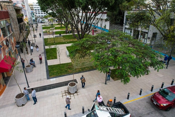 El ayuntamiento de Guadalajara hizo entrega de la intervención del Jardín Dr. Joaquín Baeza Alzaga, antes la calle del mismo nombre y la renovación de calles aledañas, esto en la zona Centro.La obra consistió en transformar las calles Baeza Alzaga en un jardín y la calle Calpulalpan en zona peatonal, aunque ambas formarían parte del espacio para peatones debido a su cercanía. En el caso del jardín, se le colocó espacios verdes con árboles, plantas decorativas y pasto, así como concreto lavado a la zona.Por lo tanto, ambas calles serán reconvertidas para uso peatonal y dejará de lado el paso de vehículos.En el caso de la calle Baeza Alzaga es la que se encuentra en las inmediaciones de las instalaciones de la Secretaría de Salud Jalisco.El presidente municipal interino de Guadalajara, Francisco Ramírez, destacó que habrá conectividad, seguridad e iluminación para transeúntes que circulen por la zona del Parque Morelos.Francisco Ontiveros, Director de Obra Pública del municipio tapatío, resaltó la transformación del lugar al pasar de una calle que, en su mayoría, era acaparada por espacios de estacionamiento, a una zona peatonal y con parque incluido.“Hoy es un bello andador peatonal. Esta intervención es un rescate de un espacio público de lo que antes era un estacionamiento, hoy es un bello parque”.La otra calle que tuvo una intervención es la de Agua Fría, cerca de la Calzada Independencia.En total, para la obra se destinaron 19.3 millones de pesos para la renovación de ambas calles.*Mantente al día con las noticias, únete a nuestro canal de WhatsApp aquí: https://whatsapp.com/channel/0029VaAf9Pu9hXF1EJ561i03MV