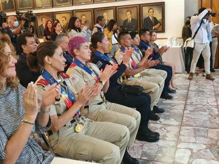 Los policías y bomberos de Guadalajara que participaron y ganaron en los Juegos Mundiales de Policías y Bomberos 2022 en Rotterdam, Países Bajos, fueron reconocidos en Palacio Municipal.El comisario tapatío, Juan Pablo Hernández, reconoció a los elementos, y señaló que sabe el esfuerzo que hacen por entrenar y ser buenos policías.“Seguramente esto servirá para, el próximo año, tener más apoyos sobre todo económicos”, señaló.El alcalde tapatío, Pablo Lemus, aseguró que apoyaran con recursos para que participen el siguiente año: “creo que hay gente extraordinaria en nuestros equipos de trabajo, y por eso quisimos hacer este reconocimiento”.Por su parte, el comandante Luis García pulido, coordinador municipal de Protección Civil y Bomberos, destacó que el departamento de bomberos de Guadalajara fue el único de México que participó.Los elementos que representaron a la ciudad y a las corporaciones tapatías fueron los bomberos Agustín Herrera Barrios, Jenny de la Torre, Marcos Cobián y Araceli Cruz.Por parte de la Comisaría asistieron los policías Eduardo Sánchez y Michelle Rubio.La delegación de Guadalajara obtuvo en total 28 medallas, 13 de ellas de oro.GC