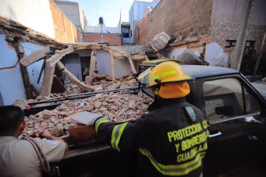 Cuatro personas resultaron lesionadas luego de que se cayera el techo de una casa en la colonia Santa Cecilia. La bóveda se vino abajo cuando le estaban dando mantenimiento a la finca.Fue alrededor de las 15:26 horas, cuando la Coordinación de Protección y Bomberos de Guadalajara recibió el reporte vía el número de emergencias 911 de un derrumbe en el cruce de las calles Genaro Godínez y Joaquín Amaro.“En Santa Cecilia nos reportan un derrumbe con personas atrapadas. Al arribar nos mencionan que es una casa habitación de un solo nivel, están haciendo la reparación correspondiente a dos habitaciones y ya estaban por derribar el muro frontal".Señalaron que el daño que vieron en el lugar era considerable, pues se colapsó una de las trabes que se encontraban sosteniendo las demás estructuras."Tenemos cuatro personas lesionadas, tres de ellas adultos y otro menor de edad, un par están graves y las restantes leves. Fueron trasladadas a la Cruz Roja del Parque Morelos”, comentó Miguel Santana, comandante de bomberos de la zona.Había seis personas en el domicilio, de las cuales cuatro sufrieron lesiones y fueron llevadas a la Cruz Roja del Parque Morelos. Otros dos resultaron ilesos porque al momento del incidente estaban en un área que no tuvo daños.Los rescatistas además hicieron una búsqueda con el binomio canino y descartaron más personas debajo de los escombros.La coordinación contingencias del Ayuntamiento de Obras Públicas y Gestión Integral de Bomberos continuarán la evaluación estructural de la finca para determinar si hay riesgo de colapso en otra sección.