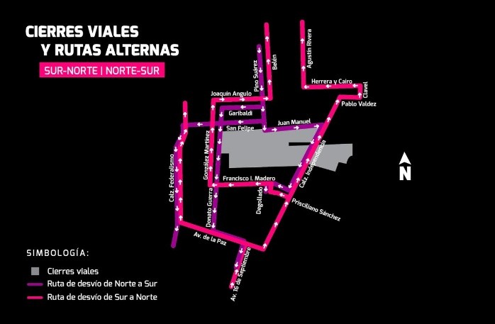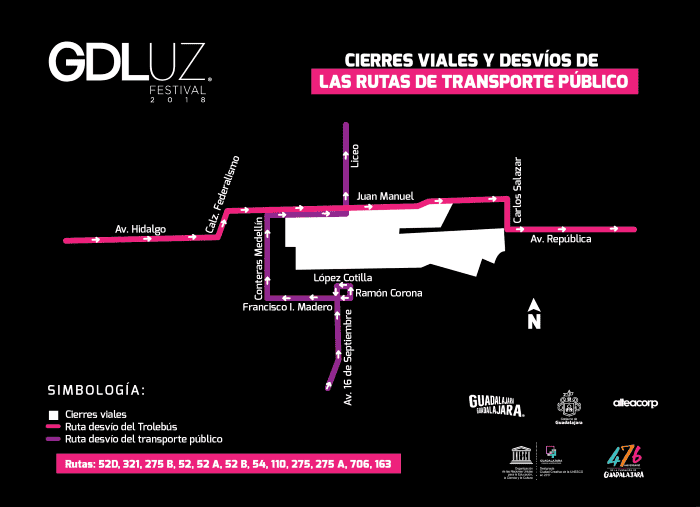 El Centro Histórico de Guadalajara registrará varios cierres de vialidades por GDLUZ, el festival de luces y multimedia que se celebra en el marco del aniversario de la ciudad.El Ayuntamiento tapatío anunció que los cierres serán del 14 al 18 de febrero, de las 5:00 pm a las 11:30 pm.Incluyen las avenidas Hidalgo, Morelos y Pedro Moreno, entre Ocampo-Zaragoza y la Plaza Tapatía.IM