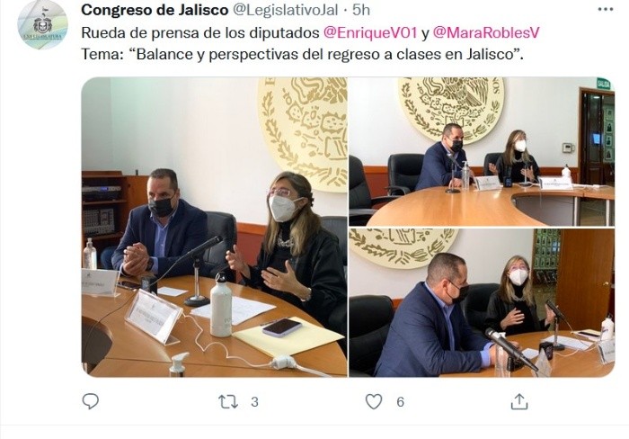 Los diputados de Hagamos, Mara Robles y Enrique Velázquez, exigieron al gobernador de Jalisco rendir cuentas sobre el mecanismo de regreso a las aulas y presentaron propuestas para que se reduzca de manera efectiva el riesgo de contagio; asimismo, pidieron la comparecencia de Juan Carlos Flores Miramontes, Secretario de Salud de Jalisco.Los legisladores detallaron las ocho medidas indispensables para garantizar la seguridad sanitaria de los estudiantes, las cuales son:La diputada Mara Robles habló de la opacidad como una constante: “Las sesiones en el Congreso son como huevito kínder porque siempre traen sorpresa: meten cosas de último minuto para que no podamos reaccionar y hay una enorme opacidad sobre lo que se va a discutir”, señaló.Del mismo modo, en el tema del regreso a clases, Robles señaló hay mucha información que simplemente no se ha hecho pública, lo que es grave.“Ayer se nos da aparentemente una buena noticia, que todos celebramos: que según los datos oficiales, no han crecido los contagios de COVID de manera exponencial, lo cual nos alegra muchísimo porque, como saben, hemos sido unos férreos promotores del regreso a clases. Pero esa información sólo es una parte de la que necesitamos. Yo les pregunto a ustedes, ¿existe un estudio con datos duros de los resultados de las clases a distancia, donde se señale para empezar cuántos niños lograron conectarse, los que se conectaron cuántas veces se conectaron a clase, si los que lograron conectarse aprendieron o no aprendieron, qué dificultades tuvieron, si fueron examinados o no? ¿Verdad que eso no lo conocemos nadie?", aseguró.Mara Robles insistió, al finalizar su intervención, en la comparecencia del Secretario de Educación y en la posibilidad de que la UDG regrese a clases.“Nuestra tarea es pedir una rendición de cuentas y por lo tanto nosotros vamos a seguir demandando la comparecencia de los secretarios de Educación tanto Básica como Superior. Finalmente termino diciendo que hacemos votos para que la Universidad de Guadalajara regrese a clases. Estoy segura de que en la universidad si se tomaran en cuenta todos estos indicadores y que podrá demostrar cómo se puede volver a clases con evidencia científica que garantice certezas a estudiantes, familias y docentes”, señaló.Si te interesó esta noticia y quieres saber más, entonces descarga y descubre INFORMAPlus, la aplicación digital de EL INFORMADOR, en donde tenemos contenidos exclusivos, seleccionados por nuestros editores, para darles una experiencia más completa a los lectores. Si eres suscriptor de EL INFORMADOR tu acceso está incluido, solicítalo al 33 3678-7777.Descarga la aplicación y pruébala GRATIS por treinta días.Para iOS: https://apple.co/35jaVgbPara Android: https://bit.ly/3gwVSEVJM