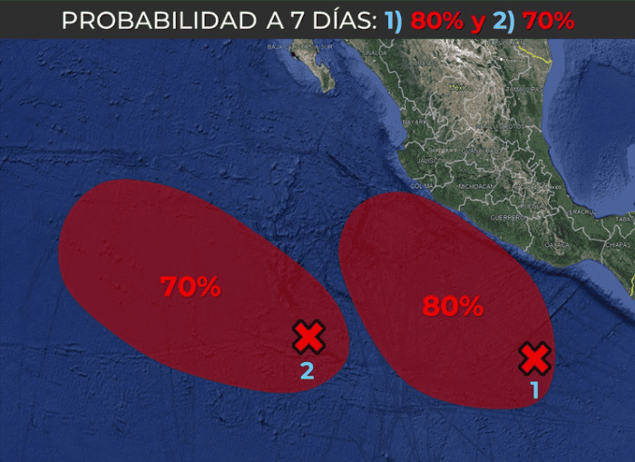 El Servicio Meteorológico Nacional (SMN), fuente oficial del Gobierno de México en materia climática, advirtió este martes que un nuevo fenómeno natural, ubicado en el Océano Pacífico, podría seguir desarrollándose con potencial ciclónico, lo que eventualmente daría forma a "Irwin".Las lluvias mencionadas estarán acompañadas de descargas eléctricas, fuertes rachas de viento en zonas de tormenta y posible caída de granizo. Asimismo, las lluvias, desde el rango de fuertes, podrían reducir la visibilidad en tramos carreteros, ocasionar el incremento de ríos y arroyos, así como generar deslaves, inundaciones y encharcamientos. Con información del Servicio Meteorológico NacionalOA