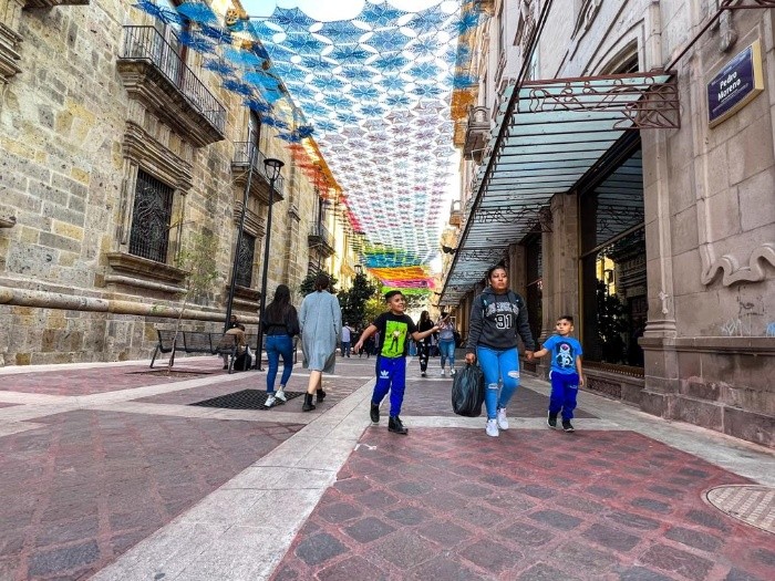Como un atractivo más para acudir al Centro Histórico de Guadalajara, fue colocado un tramo de tejido aéreo elaborado por artesanas de Etzatlán. El alcalde tapatío, Pablo Lemus Navarro, detalló que son aproximadamente 150 metros de “Cielo Tejido” sobre el andador Pedro Moreno en el tramo de la calle Corona hasta Maestranza. El tejido permanecerá por tiempo indefinido.“Tenemos este atractivo desde Etzatlán para que la gente se venga a tomar selfies y muchas fotografías, aquí que se ve hermoso. El alcalde Mario Camarena me ha dicho que el tejido se puede quedar todo el tiempo que la gente siga viniendo a tomarse fotos” , dijo. Lemus Navarro refirió que el tejido se suma a otras actividades como el festival Ilusionante que esperan atraiga a 4 millones de visitantes. Además de que en unos días se inaugura el paseo Wixárika que será móvil y comienza en la zona de El Santuario de Guadalupe.Mario Camarena González Rubio, presidente municipal de Etzatlán, señaló que para él es motivo de gusto traer a la capital del Estado una muestra de las artesanías de su comunidad. Reiteró la invitación a visitar el municipio de la Región Valles donde hay alrededor de 9 mil metros cuadrados de tejido sobre las calles de su zona centro.“Esto es hecho por mujeres artesanas etzatlenses, cada carpeta la realizan las artesanas; es tejido de rafia y tiene un protector para rayos ultravioleta, nació para adorar al Señor de la Misericordia que es el patrón de Etzatlán”, comentó. Juan Manuel Munguía Méndez, superintendente del Centro Histórico, explicó que la colocación del tejido se planeó tras la apertura de las obras de rehabilitación del andador que fue intervenido en ese tramo.Para instalar el tejido se pidió la autorización del Instituto Nacional de Antropología e Historia (INAH), aunque no se colgó nada de los edificios históricos y los tejidos se sostienen de cables colocados entre las luminarias.FS