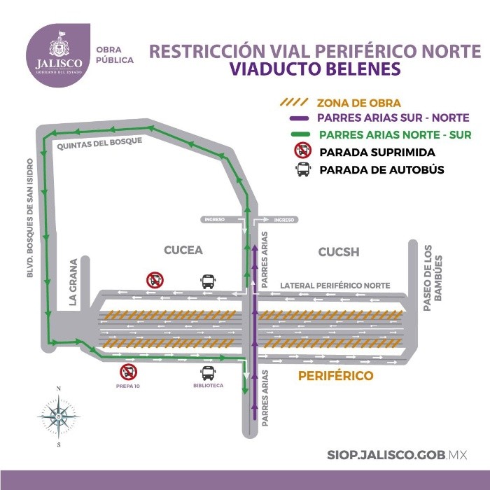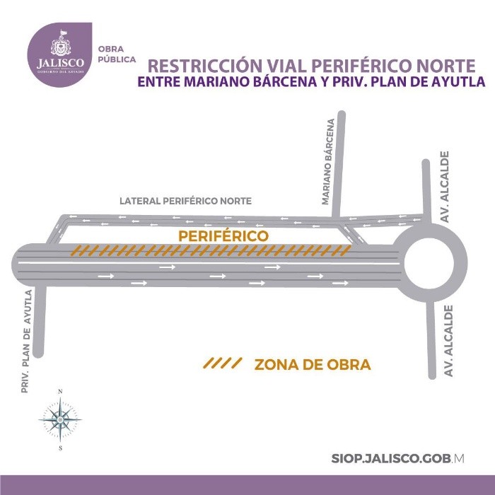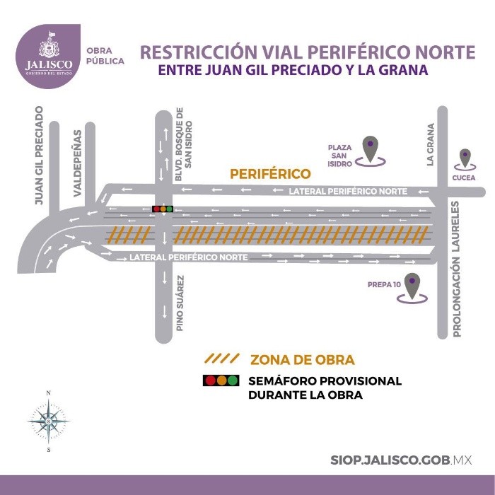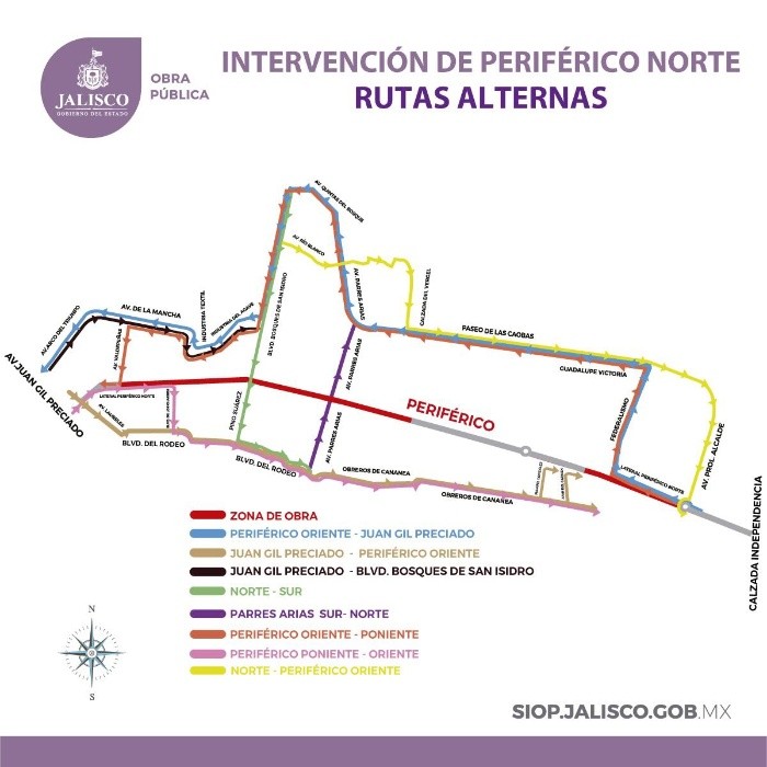 Las obras para colocar concreto hidráulico en Periférico Norte, de Juan Gil Preciado a Calzada Independencia, comenzaron este domingo y con ello los cierres viales.La Secretaría de Infraestructura y Obra Pública ha informado que durante los trabajos que se estima durarán ocho meses no se realizarán cierres totales en Periférico, si no parciales, los cuales variarán conforme las etapas de las obras.Estas son las rutas alternas consideradas para la primera intervención:IM