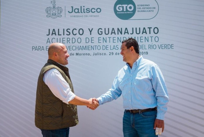 Esta mañana, el Gobernador del Estado de Jalisco, Enrique Alfaro, y el Gobernador de Guanajuato, Diego Sinhue Rodríguez Vallejo, firmaron el “Acuerdo de Entendimiento para el Aprovechamiento de las Aguas del Río Verde”, que permite a Jalisco recuperar el agua para la entidad, respetando los acuerdos de 1995 y 1997, y garantizar el abastecimiento del agua en Los Altos y el AMG.Tras la firma del Acuerdo, llevada a cabo en Lagos de Moreno, Alfaro Ramírez afirmó que se trata de un hecho histórico que permitirá, al final de su sexenio, resolver de fondo un problema que no se había atendido en muchos años.“Es una reunión histórica en la cual junto con el gobernador de Guanajuato hemos dado los primeros pasos para resolver un conflicto viejo y un problema que tenía 40 años sin resolverse en el estado: el del abasto de agua para el estado y los Altos de Jalisco... Es un paso histórico, es el primer elemento que se necesita para ahora sí resolver de fondo el problema de abasto de agua para nuestro estado”.El mandatario afirmó que este acuerdo permite cuidar los intereses de los jaliscienses. “En los convenios que se habían hecho en otros momentos, en los cuales los gobiernos de Jalisco habían dado la espalda a los intereses del estado, se había acordado que Jalisco recibiría solamente el 32% del agua y Guanajuato el 68%". "Con este acuerdo”, agregó el Gobernador, “Jalisco recibirá el 76% del agua y Guanajuato el 24%. Estamos respetando los términos del decreto del 95 y del 97 que se habían violentado en los convenios que se habían celebrado en el 2005 y 2007”.A partir de la firma de este documento para abastecer de agua a la población de ambos estados, y de acuerdo con el compromiso público manifestado por el Presidente Andrés Manuel López Obrador, el Gobierno Federal llevará a cabo estudios, proyectos y obras de infraestructura: A) El Acueducto Zapotillo-Los Altos de Jalisco-León, con los puntos de conexión para beneficiar a los municipios de Jalisco: Cañadas de Obregón, Encarnación de Díaz, Jalostotitlán, Lagos de Moreno, Mexticacán, San Diego de Alejandría, San Juan de los Lagos, San Julián, San Miguel El Alto, Teocaltiche, Unión de San Antonio, Valle de Guadalupe, Villa Hidalgo y Yahualica de González Gallo.B) La construcción de la Presa y sistema de bombeo Purgatorio, para el abastecimiento de agua al Área Metropolitana de Guadalajara, que se integra por: Guadalajara, Zapopan, Tlaquepaque, Tonalá, Tlajomulco de Zúñiga, El Salto, Juanacatlán, Zapotlanejo e Ixtlahuacán de los Membrillos.C) Así como la determinación de las especificaciones técnicas de la Presa el Zapotillo, por parte de la Comisión Nacional del Agua.“Creemos que el Presidente de México no le va a fallar a Jalisco y a Guanajuato para construir las obras de infraestructura para que el agua le llegue a la gente. Estamos garantizando que las poblaciones de los Altos de Jalisco tengan garantizado el abasto de agua, que no se vean afectadas con este proyecto. Estamos logrando también que Guadalajara resuelva sus necesidades de abastecimiento para los próximos años. Es un avance importante, pero vienen días clave en los cuales esta negociación tiene que continuar con el Gobierno de la República y con la Comisión Nacional del Agua”, agregó Alfaro Ramírez.Por último, respecto a las obras de infraestructura que se han hecho en los últimos años sobre la cuenca, el mandatario jalisciense enfatizó:“Queremos aclarar que los temas que han generado polémica, particularmente la Presa el Zapotillo, es una obra que no hicimos nosotros, es una obra del Gobierno Federal y tendrá que ser el Gobierno Federal el que determine las características técnicas del proyecto. Hoy estamos garantizando que las obras de infraestructura que se hagan en la cuenca del Río Verde tendrán un porcentaje de distribución permanente del 76% para Jalisco y el 24% para Guanajuato, y por otro lado tendremos las condiciones para garantizar que la infraestructura para que el agua llegue a las poblaciones pueda estar financiada por el Gobierno de la República como fue el compromiso de Andrés Manuel López Obrador”.La cuenca del río Verde comprende una extensión en superficie de 20 mil 705 kilómetros cuadrados, dentro de los territorios de Aguascalientes, Guanajuato, Jalisco, San Luis Potosí y Zacatecas.Para reducir el déficit actual y atender las necesidades de la población se requiere que las obras de infraestructura necesarias para el aprovechamiento del Río verde suministren como mínimo 0.38 metros cúbicos para Tepatitlán de Morelos; 1.8 metros cúbicos para los Altos de Jalisco; 5.6 metros cúbicos para el Área Metropolitana de Guadalajara y 3.8 metros cúbicos para la ciudad de León, Guanajuato.JM