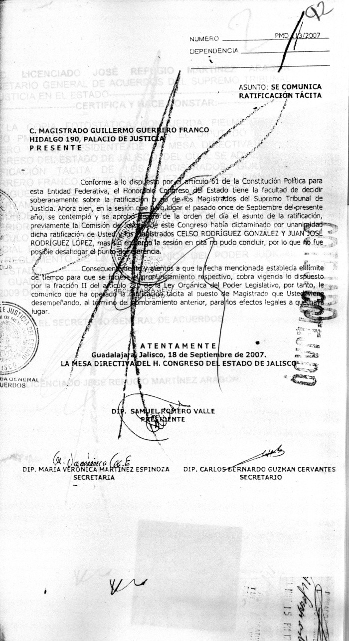 Aunque el Congreso de Jalisco la nombró magistrada del Supremo Tribunal de Justicia (STJ) y hasta tomó protesta, Rosa María del Carmen López Ortiz cumplió un año “en la banca”, a la espera de que se resuelva un amparo que permite al magistrado saliente, Celso Rodríguez González, prolongarse en el cargo a pesar de que cumplió 18 años en el puesto, un año más del tope que fija la Constitución local.La aún jueza del Juzgado Octavo de lo Civil denunció que detrás hay un abuso de prácticas dilatorias y presunto tráfico de influencias para entrampar el caso por parte de Rodríguez González y sus abogados. Una prueba son el medio centenar de artilugios legales para frenar la audiencia incidental que permitiría avanzar el juicio de amparo.“¿Yo qué puedo presumir? Que hay un tráfico de influencias; que la justicia federal no está siendo en el mismo plano para el señor magistrado y para mí. Le han dado una oportunidad inmensa de seguir en el cargo constituyéndole un derecho, el cual no tiene”, acusó.La magistrada electa advirtió que no es habitual que una audiencia de esta naturaleza tarde tanto –demora máximo tres meses–. También recordó que el año pasado, a la par de su designación, se nombró magistrado a Gonzalo Julián Rosa Hernández, quien también enfrentó un amparo, pero en su caso el proceso se ha desahogado y está en funciones.Cuestionado sobre los señalamientos en su contra, el magistrado Celso Rodríguez González prefirió no responder pues dijo que el juicio sigue abierto. “Yo no voy a contestar porque es engancharme con ella, hay un juicio, ella que le dé seguimiento al juicio y no creo que todas las autoridades estén coludidas en esto”, comentó.López Ortiz insistió en que las irregularidades en su caso vienen de origen. Acusó al ex presidente del Poder Judicial del Estado de ocultar que el Juzgado Cuarto de Distrito en Materia Administrativa y luego el Séptimo Tribunal Colegiado le negaron una primera suspensión. En una segunda solicitud de amparo, pero ante el Juzgado Primero de Distrito en Materia Administrativa, se le concedió la suspensión provisional –omitiendo informar que antes se le había negado– y ésta luego fue ampliada por el Quinto Tribunal Colegiado en Materia Administrativa que hoy lo mantiene en el cargo. El argumento legal de Rodríguez González es insostenible, aseguró la magistrada electa. Él cuestiona su ratificación tácita para un segundo periodo porque el Congreso del Estado no le tomó protesta, pero la argucia es inválida pues se ostentó públicamente como magistrado por una década. Incluso en 2011 presentó ante autoridades federales un oficio sobre su ratificación como magistrado en una disputa jurídica por una Fiat notarial.“Con el señor magistrado Celso no hay una igualdad. Quiero creer que por haber sido presidente del Supremo Tribunal por siete años consecutivos, algunas ventajas están obteniendo y haciendo uso de ellas”, concluyó la juez.Ante el abuso de recursos jurídicos promovidos por el magistrado Celso Rodríguez González y sus abogados para demorar la resolución del amparo que lo mantiene en el cargo, la magistrada electa, Rosa María del Carmen López Ortiz presentó una queja ante el Consejo de la Judicatura Federal.La también jueza comentó que notificó al Séptimo Tribunal Colegiado en Materia Administrativa sobre la batería de recursos usados “maliciosamente” para prolongar el caso y que pese a la evidencia de al menos 50 artilugios legales dilatorios, respondieron que no advierten abusos. Por ello, solicitó que también se dé vista al agente del Ministerio Público de la Federación.“Presenté una queja ante el Consejo de la Judicatura Federal porque son bastantes irregularidades que se han estado registrando. Yo observo una complacencia de los tribunales colegiados de este circuito hacia el señor, aún magistrado, y le permiten perennizarse en el cargo y le constituyen derechos”, señaló.Agregó que no descarta recurrir a la Suprema Corte de Justicia de la Nación (SCJN) como la última instancia y solicitar que atraiga su caso para que los ministros lo analicen. Los principales argumentos son que, a más de un año, no se ha celebrado la audiencia incidental, se tiene paralizado el procedimiento y no han aplicado una medida de apremio por no resolver.Subrayó que la SCJN publicó una contradicción de tesis en la que refiere que no es procedente que se conceda la suspensión provisional o definitiva en los casos de ratificación o reelección en el cargo de un magistrado.La magistrada electa refirió que no tiene nada que reprochar al Congreso del Estado, pues no le toca al Poder Legislativo defenderla. También subrayó que si Celso Rodríguez y sus abogados recurren a mecanismos dilatorios que ya surtieron efecto un año, es porque a todas luces la resolución del amparo con los argumentos que esgrimen no les favorecerá.GUÍA¿Qué dice la Constitución Política de Jalisco?En su Artículo 61, refiere que los magistrados del Supremo Tribunal de Justicia durarán en el ejercicio de su encargo siete años, al término de los cuales podrán ser ratificados por 10 más. Son causas de retiro forzoso haber concluido los 10 años del segundo periodo o cumplir 70 años.¿Cómo es el proceso de ratificación de magistrados?Tres meses antes de concluir su primer periodo, el pleno del Supremo Tribunal debe elaborar un dictamen técnico en el que se analice y emita opinión sobre la actuación y desempeño del magistrado. El dictamen y el expediente del magistrado serán enviados al Congreso del Estado para su estudio. El Legislativo decide la ratificación, o no, mediante el voto de las dos terceras partes de los diputados presentes.¿El nombramiento puede prolongarse?Los magistrados ratificados para concluir el periodo de 17 años no podrán, en ningún caso, volver a ocupar el cargo. Y los juzgadores que, habiendo concluido el periodo de si