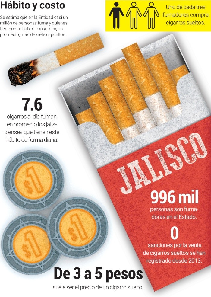 A pesar de que la ley la prohíbe, la venta de cigarros sueltos es una práctica común en la Zona Metropolitana de Guadalajara (ZMG). La Ley General para el Control del Tabaco señala en su Artículo 16 que no se permite “comerciar, vender, distribuir o suministrar cigarrillos por unidad”. Sin embargo, la restricción se encuentra prácticamente en el olvido en muchos comercios de la ciudad.Como respuesta a una solicitud de información, vía Transparencia, la Secretaría de Salud Jalisco (SSJ) informó que no se ha sancionado a ningún establecimiento por esta práctica. Sin embargo, en un recorrido realizado por comercios ubicados en colonias como La Perla, Independencia Oriente, El Retiro y el Centro, este medio corroboró que el comercio de cigarros por unidades es un acto cotidiano. De una veintena de establecimientos que se visitaron, sólo seis no realizaban esta acción.Según la Encuesta Nacional de Consumo de Drogas, Alcohol y Tabaco 2016-2017 (Encodat), en la Entidad hay actualmente 996 mil fumadores. Cuatro de cada 10 consumen tabaco diariamente.Uno de ellos es Fernando Morales, quien acostumbra comprar cigarros sueltos cuando no tiene dinero suficiente para adquirir la cajetilla completa o cuando intenta dejar de fumar. En este último caso, opinó que adquirirlos así le permite dosificar la cantidad de tabaco que consume. Sus intentos por dejarlo no han sido exitosos.Octavio Campollo Rivas, director del Centro de Estudios en Alcoholismo y Adicciones de la Universidad de Guadalajara (UdeG), explicó que la prohibición de vender cigarros sueltos es útil porque obstruye la capacidad adquisitiva de los fumadores.“Hay personas fumadoras que en algún momento no tienen cigarros y tampoco tienen el dinero suficiente para comprar la cajetilla completa. La venta de cigarros sueltos permite que se compre uno o dos para seguir fumando”.Octavio Campollo (titular del Centro de Estudios en Alcoholismo y Adicciones de la UdeG) Se reduce práctica entre los adolescentesEl especialista acentuó que, aunque la cantidad de fumadores adultos se ha mantenido fija, sí se puede observar una disminución del hábito entre los adolescentes, el cual pasó de tener una prevalencia de 10% a 6% a nivel nacional.El investigador destacó que no se puede determinar si las políticas públicas implementadas son las responsables de esta reducción, pues no se han hecho los estudios necesarios.La Ley General para el Control del Tabaco es una consecuencia de la entrada a México al Convenio Marco de la Organización Mundial de la Salud (OMS) para el Control del Tabaco en 2003 y cuya adhesión el país confirmó un año después. No obstante, el experto lamentó que no se pueda confirmar si las políticas públicas implementadas tienen la efectividad deseada.“No podemos correlacionar que la firma a este tratado haya provocado la disminución al tabaquismo. No se sabe porque no se ha hecho un estudio al respecto”.En Jalisco, la edad promedio en que las personas se inician en el hábito de fumar va de los 17 a los 20 años. La prevalencia de adolescentes jaliscienses que son fumadores es de 3%, de los cuales la mayor parte son fumadores ocasionales.Jalisco tiene una alta exposición de Humo de Tabaco de Segunda Mano (HTSM) en el trabajo. La Encodat 2016-2017 señala que, mientras que el promedio nacional es de 15%, el Estado registra 23 por ciento.Además, es la segunda Entidad con una mayor exposición para los no fumadores al humo de tabaco en el hogar, con una prevalencia de 19 por ciento. El promedio nacional se ubica en 14 por ciento.Esta exposición para los no fumadores afecta de manera particular a los adolescentes, pues estos estuvieron en contacto con el humo del tabaco casi el doble que los adultos.El Estado también presenta una mayor exposición de HTSM que el promedio nacional en restaurantes, bares, transporte público y escuelas.En el Estado, una quinta parte de la población fuma tabaco. La Ley de Protección contra la Exposición al Humo de Tabaco entró en vigencia en febrero de 2013 con el objetivo de proteger a los no fumadores y su derecho a poder convivir en espacios libres de este humo.En los últimos seis años, no se ha impuesto una sola sanción a ningún comercio por la venta de cigarros sueltos. No obstante, no es esta la única violación a la Ley General que presenta un número pequeño de sanciones. En lo que va del año, la Secretaría de Salud Jalisco ha sancionado a siete establecimientos por no apegarse a otros lineamientos para el control de tabaco. En 2017, sólo un local fue castigado.Durante la actual administración, el año en que se aplicaron más penalizaciones fue en 2013, con un total de 28. A partir de entonces, el número de multas bajó a cifras mucho menores.Dagoberto García Mejía, titular de la Coprisjal, explicó que este órgano es preventivo, no sancionatorio. Por esta razón, cuando se detectan establecimientos que funcionan en contra de las normas, primero se les invita a apegarse a la ley y se les deja un oficio donde se les advierte de la sanción a la que se pueden hacer acreedores en caso de reincidir. Destacó que, en este año, se les ha hecho este llamado a cuatro negocios. “Hay que entender que muchos comerciantes desconocen que está prohibido”, apuntó.En caso de que se detecten reincidencias, se le aplica una multa económica que puede ir de cinco mil a 70 mil pesos, según la gravedad del caso.La Coprisjal aseguró tener un operativo permanente en coadyuvancia con el Gobierno federal, en el cual realiza cinco revisiones por mes en el Estado, además de ubicaciones específicas a las que acuden luego de una denuncia ciudadana.En el recorrido que esta casa editorial realizó por 20 tiendas de Guadalajara, algunos de los comerciantes comentaron que no han sido objeto de una supervisión en años.