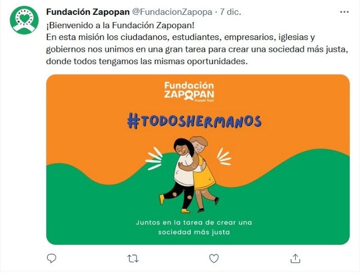 En más de dos hectáreas lanzan en la colonia Brisas de La Primavera donde estará instalada la Fundación Zapopan, Fratelli Tutti, un proyecto basado en acortar la desigualdad social en las comunidades zapopanas, vinculando a los líderes barriales para que impulsen proyectos sociales, deportivos y culturales.Este mediodía el diputado federal de la LXV Legislatura, Horacio Fernández, arrancó la estrategia, junto con el presidente de la fundación Rodrigo Juárez, el acercamiento fue para destacar el proyecto que beneficiará un polígono de 29 mil 327 personas que viven en zonas marginales.“La Fundación es un modelo que queremos hacer que atienda muchas áreas, atienda ancianos, niños, guardería, alimentos, a precios muy baratos, con convenios y su poder de compra sea mucho más fuerte, también va a haber despensas, la cuarta área será la deportes y habrá una cancha reglamentaría FIFA, con pasto sintético, no hay agua, les traemos agua con pipas. En la parte de salud es una clínica daremos diagnóstico, análisis clínicos y 201 tipos de medicinas del cuadro básico”, señaló el legislador.Fernández, además destacó que el proyecto está basado en el humanismo solidario, inspirado en el pensamiento del Papa Francisco, ciudadano y apolítico.Estarán invirtiendo entre 100 o 150 millones de pesos (MDP) en dos años para terminar con la edificación de las instalaciones de Fundación Zapopan, Fratelli Tutti, inversión que presumen será totalmente de la iniciativa privada, donaciones y más.Por su parte Rodrigo Juárez, director de Fundación Zapopan Fratelli Tutti, señaló que serán 12 las colonias que saldrán beneficiadas: 5 de noviembre, Brisas de La Primavera, Colinas de La Primavera, el Tizate, Jardines Tapatíos, La Floresta del Colli, La Noria, Loma Alta, Lomas de La Primavera, Los Cerritos, San Nicolás de La Primavera y Villas de La Primavera.Explicó que la mayoría de los hogares estaban a cargo de una mujer jefa del hogar. “En este polígono viven 30 mil personas y son poquito más de siete mil familias y de esas, casi dos mil tienen jefatura de familia femenina”, destacó.Martha Vázquez, líder de la colonia El Tizate, destaca cómo es que actualmente viven en las comunidades que apoyará la fundación y que desde su acercamiento les han llevado aguas en tres pipas.“Las principales cosas que nos hacen faltan, yo vivo en la comunidad 5 de noviembre por El Tizate, nos hace falta desde luz, agua, drenaje, estamos olvidados por los gobiernos, hoy le doy gracias a Dios, nos escuchó y nos van ayudar, tenemos agua por que la fundación nos regala y la verdad estamos muy necesitados”, acotó.La Fundación Zapopan, Fratelli Tutti, busca voluntarios que le gustaría trabajar con las diferentes comunidades, y donadores, pueden apoyar comunicándose en las redes sociales que aparecen como Fundación Zapopan en Facebook y @FundacionZapopa en Twitter.JM