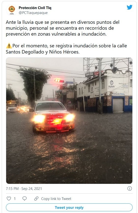 La tormenta registrada la tarde de este viernes provoca afectaciones en zonas de Guadalajara, Zapopan y Tlaquepaque, donde además de la lluvia se registró caída de granizo y rachas de viento.Hubo inundaciones en la zona de las avenidas López Mateos y Mariano Otero, también en puntos de Lázaro Cárdenas y Gobernador Curiel. Además, recibieron 25 reportes de árboles o ramas caídas en la vía pública.Debido a inundaciones en la zona de las estaciones Isla Raza y 18 de Marzo, el Sistema de Tren Eléctrico Urbano (Siteur) informó la interrupción del servicio, que se prestó de forma provisional de las estaciones Auditorio a la Juárez.Además, se notificaron encharcamientos severos en la colonia Álamo Industrial, en las calles Herramienta, Esmeril y Siderúrgica; en la Zona Industrial entre 8 De Julio y Gobernador Curiel; en colonia Echeverría entre las calles Minas Del Sur y Real De Minas; en Jardines de San José en avenida Isla Raza e Isla Gomera. También en calles de las colonias Ferrocarril; López Portillo; El Dean; Miravalle y Lomas De Polanco.En Zapopan, en puntos de las colonias Loma Bonita Ejidal, Pirules y Vicente Guerrero y en avenida Patria y Cruz del Sur. Reportan un acumulado de lluvia de 29 milímetros (mm) en Plaza del Sol, 3 mm en Jardines de Guadalupe, 8 mm en Miramar y 5 mm en El Fortín.Si te interesó esta noticia y quieres saber más, entonces descarga y descubre INFORMAPlus, la aplicación digital de EL INFORMADOR, en donde tenemos contenidos exclusivos, seleccionados por nuestros editores, para darles una experiencia más completa a los lectores. Si eres suscriptor de EL INFORMADOR tu acceso está incluido, solicítalo al 33 3678-7777.Descarga la aplicación y pruébala GRATIS por treinta días.Para iOS: https://apple.co/35jaVgbPara Android: https://bit.ly/3gwVSEVJM