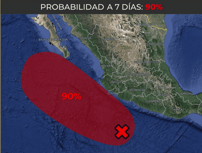 La lluvia de anoche en el Área Metropolitana de Guadalajara parece anunciar la aparición del quinto ciclón tropical en el Océano Pácífico, "Eugene". Un fenómeno que incrementa su posibilidad de desarrollo, de acuerdo al pronóstico del Servicio Meteorológico Nacional (SMN).Según un aviso emitido por el SMN, se mantiene en vigilancia una zona de baja presión asociada con la onda tropical número 18, y se localiza al sur de Michoacán, incrementando a 70% su probabilidad para desarrollo ciclónico en 48 horas, es decir, para el próximo domingo; y a 90% en 7 días. El fenómeno se localiza aproximadamente a 390 kilómetros al sur de Lázaro Cárdenas, Michoacán. Se desplaza hacia el oeste-noroeste a 18 km/h.El pronóstico del SMN señala que para el Pacífico Centro habrá cielo nublado la mayor parte del día. Ambiente fresco por la mañana y templado sobre costas. Bancos de niebla matutinos en zonas serranas. Lluvias puntuales intensas en Nayarit, Jalisco, Colima y Michoacán, con descargas eléctricas y posible caída de granizo; las cuales podrían incrementar los niveles de ríos y arroyos, y generar deslaves e inundaciones. Por la tarde, ambiente cálido, llegando a ser caluroso en zonas de Nayarit. Viento del este y sureste de 15 a 30 km/h en la región, con rachas de 60 a 80 km/h y olas de 2 a 4 metros de altura en costas de Michoacán y Colima.Por otra parte, la onda tropical Núm. 19 recorrerá el sureste del territorio nacional y producirá lluvias puntuales intensas en Chiapas, Tabasco, Veracruz y Oaxaca, así como lluvias puntuales fuertes en la Península de Yucatán.El monzón mexicano propiciará lluvias puntuales muy fuertes en Zacatecas y Sinaloa, y puntuales fuertes en Aguascalientes y Durango, todas acompañadas de descargas eléctricas, fuertes rachas de viento y posible caída de granizo; así como chubascos en Sonora y Chihuahua, además de lluvias aisladas en Baja California Sur.La entrada de humedad del Océano Pacífico, en combinación con la inestabilidad atmosférica superior, mantendrán la probabilidad de lluvias puntuales fuertes a muy fuertes, tormentas eléctricas y posibles granizadas en el centro del territorio, incluido el Valle de México.A su vez, la entrada de humedad del Golfo de México favorecerá lluvias puntuales fuertes a muy fuertes, tormentas eléctricas y posibles granizadas en el oriente del país y lluvias aisladas en el noreste de México.Finalmente, una circulación anticiclónica en niveles medios de la atmósfera, mantendrá ambiente vespertino muy caluroso en zonas del noreste y norte del país y ambiente extremadamente caluroso en zonas de Baja California y Sonora.Con información del Servicio Meteorológico NacionalOA