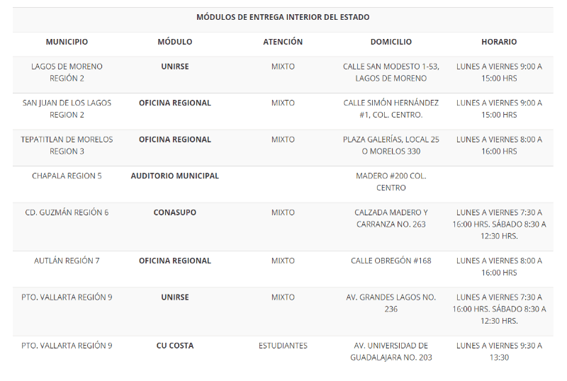 El Gobierno de Jalisco anunció hoy que el programa de “Bienevales” continuará ahora con el nombre de “Mi Pasaje”. Cabe recordar que los Bienevales del año anterior ya vencieron y no son válidos. Los transvales serán reemplazados gradualmente con los nuevos vales amarillos de "Mi Pasaje".Los beneficiarios de este programa serán los mismos que se registraron durante 2018. Debido al presupuesto asignado, este año no habrá nueva convocatoria, sólo refrendo de los beneficiarios registrados.Para los adultos mayores y personas con discapacidad se repartirá según orden alfabético a partir del 30 de Enero. Solo presentar tu IFE, INE o pasaporte (original y copia): Por su parte, los estudiantes de nivel básico, medio superior y superior podrán agendar su cita desde el 30 de enero al 19 de febrero del 2019 en https://programassociales.jalisco.gob.mx/beneficiarios/, su entrega será del 20 de febrero al 12 de abril del 2019, en los distintos módulos de lunes a viernes de 8:30 a 16:00 horas y sábados, sólo en módulos participantes de 8:30 a 12:30 horas.¿Dónde lo podrán adquirir?En uno de los 20 módulos de entrega donde siempre los habías recogido:MODULOS DE ATENCION Y ENTREGA DE MI PASAJE 2019 AGUADALAJARA* Parque Agua Azul Calzada independencia sur no. 973. Lunes a viernes 7:30 a 16:00 hrs.* Parque San Jacinto Av. Javier Mina y Plutarco Elías Ealles. Lunes a viernes 7:30 a 16:00 hrs. sábado 8:30 a 12:30 hrs.* Oblatos Av. Circunvalación y Av. Artesanos. Lunes a viernes 7:30 a 14:00 hrs.* Complejo panamericano de voleibol Av. Ávila Camacho al cruce con Av. de la Presa. Lunes a viernes 7:30 a 16:00 hrs.* Centro Calle Nueva Galicia esquina Colón. Lunes a viernes 7:30 a 16:00 hrs. sábado 8:30 a 12:30 hrs.* DIF estatal Para adultos mayorer y personas con discapacidad Av. Alcalde no. 1220. Lunes a viernes 7:30 a 14:00 hrs.* DIF El Sauz Avenida Patria no. 3116. Lunes a viernes 7:30 a 16:00 hrs.* Prepa 6 Av. Literatura y Arístides, Col. Miravalle. Sólo estudiantesZAPOPAN* Secundaria técnica 24 Paseo de los Alarces no. 1158. Lunes a viernes 7:30 a 16:00 hrs.* Las Águilas Av. Adolfo López Mateos no. 5150. Lunes a viernes 7:30 a 14:00 hrs.* DIF Zapopan Para adultos mayores y personas con discapacidad Av. Laureles 1151. Lunes a viernes 7:30 a 14:00 hrs. sábado 8:30 a 12:30 hrs.* CUCBA Camino Ramón Padilla Sánchez no. 2100. Sólo estudiantesTLAQUEPAQUE* CODE paradero Gral. Marcelino García Barragán no. 1820. Lunes a viernes 7:30 a 16:00 hrs. sábado 8:30 a 12:30 hrs.TONALÁ* Instituto de la Juventud Circuito Loma Sur no. 8780. Lunes a viernes 7:30 a 16:00 hrs.* Desarrollo Social Av. Rio Nilo 8096. Lunes a viernes 7:30 a 16:00 hrs. sábado 8:30 a 12:30 hrs.* CU Tonalá Av. Nuevo Periférico no. 555 Ejido San José Tatepozco. Sólo estudiantesTLAJOMULCO* Plaza principal Andador centenario no. 47. Lunes a viernes 7:30 a 14:00 hrsEL SALTO* DIF Para adultos mayores y personas con discapacidad Calle 20 de Mayo, col. Las Pintas. Lunes a viernes 7:30 a 14:00 hrsZAPOTLANEJO* Presidencia Municipal Lunes a viernes 7:30 a 14:00 hrs