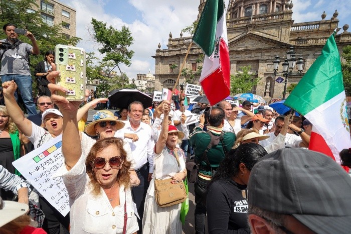 Miles de personas marcharon esta mañana desde Jardín Reforma hasta la Plaza de Armas, en la Zona Centro de Guadalajara, para defender el triunfo electoral de Pablo Lemus, gobernador electo de Jalisco, sobre Claudia Delgadillo en las pasadas elecciones del 2 de junio.En punto de las 10:00 horas miles de integrantes de asociaciones civiles y de la ciudadanía de Jalisco se congregaron en Paseo Alcalde y la calle Reforma para iniciar su recorrido con rumbo al kiosko de la Plaza de Armas, frente a la Catedral de Guadalajara, donde llegaron alrededor de las 10:30 horas.“Debe quedarles muy claro a las autoridades electorales centralistas, que ya saben quién, que las decisiones fundamentales de los jaliscienses se toman en Jalisco, y exigimos pleno respeto a nuestras determinaciones. Que no se metan con Jalisco. Hay que dejar muy claro aquí: los jaliscienses nos expresamos de forma contundente en las urnas. Los votos fueron transparentes y un reflejo de la pluralidad”, dijo Salvador Cosío Gaona, presidente de la asociación “Confío en México”.Entre gritos de “Pablo, Pablo, Pablo” y “El pueblo ya voto y Jalisco decidió”, los manifestantes recorrieron Paseo Alcalde cargando carteles en los que se leía “¡El voto de los jaliscienses se respeta!” y “¡Morena no!”. “No vamos a permitir, de ninguna manera, que nos arrebaten a la mala lo que obtuvimos legalmente en las urnas”, agregó Cosío Gaona.El pasado 20 de septiembre la Sala Regional del Tribunal Electoral del Poder Judicial de la Federación (TEPJF) ratificó los triunfos de Verónica Delgadillo, Quirino Velázquez y Laura Imelda Pérez en Guadalajara, Tlajomulco y Tlaquepaque respectivamente. En el caso de la alcaldía tapatía, las autoridades electorales desecharon los argumentos de ‘Chema’ Martínez de múltiples irregularidades en la elección, como el rompimiento de la cadena de custodia en el traslado de los paquetes electorales a las sedes distritales o la desaparición y alteración de los votos.En tanto, en Tlaquepaque fueron desechados los reclamos de actas perdidas que presentó la candidata emecista Citlalli Amaya. En Tlajomulco se desestimaron los argumentos de irregularidades en la elección presentados por Lourdes Barrera de Morena. La última instancia electoral será la Sala Superior del TEPJF, que deberá emitir una determinación antes del 1 de octubre, cuando los alcaldes electos entran en funciones.Por su parte, el TEPJF tiene hasta el 5 de diciembre para tomar una decisión respecto a las supuestas irregularidades que Morena y Claudia Delgadillo denunciaron en las pasadas elecciones del 2 de junio. “Ya hubo una decisión ciudadana tomada, queremos que los criterios de decisión sean legales y no políticos. Que no se dejen intimidar y que se defina conforme a la ley. Esto está muy claro y estamos seguros del resultado: la sociedad civil de Jalisco, unida, en conjunto, está presente y seguiremos exigiendo que se defina en esa misma ley”, comentó Pedro González de la asociación civil Ciudadanos MX.FS