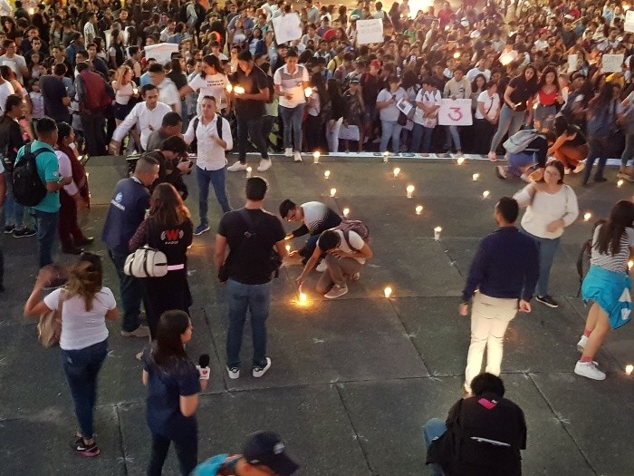 Alrededor de mil 200 personas, según autoridades municipales, marcharon este martes para recordar a los tres jóvenes estudiantes de cine vistos por última vez el 19 de marzo de 2018 cuando regresaban de realizar una tarea escolar.A la concentración, titulada “Marcha para no olvidar” acudieron estudiantes de distintas universidades, integrantes de la sociedad civil y del colectivo de Familias Unidas por Nuestros Desaparecidos en Jalisco (FUNDEJ).Partieron de la Plaza de la República en punto de las 18:30 horas y caminaron por la avenida Chapultepec hasta llegar a la Glorieta de las y los desaparecidos, donde los asistentes colocaron veladoras blancas sobre la explanada, alumbrado los rostros plasmados en los carteles que llevaban consigo familiares con algún ser querido desaparecido.“Cada una de estas veladoras significa la esperanza que tenemos de encontrar a cada uno de los nuestros. Gracias por solidarizarse” dijo Guadalupe Aguilar, integrante de FUNDEJ, a los presentes.Para Aguilar, esta protesta, significó recordar no solamente a Marco, Daniel y Salomón, los tres jóvenes estudiantes de cine, quien consideró, tenían un gran futuro, sino a las más de cinco mil personas aún sin localizar en la Entidad, a quienes le dieron rostro gracias a la relevancia que se le dio a su caso.Además, motivó a todo aquel con algún familiar desaparecido a continuar manifestándose hasta encontrar a sus seres queridos pues “no porque la vida sea absurda deben de permanecer en una apatía profunda”.“A un año el balance de este caso que es de resonancia mundial, hasta el momento hay impunidad, y es terrible escuchar por parte de la autoridad ayer, que las personas que fueron detenidas por presuntamente haber disuelto a los estudiantes, se pueda caer por inconsistencias en la carpeta de investigación”, expresó por su parte, Jesús Medina, presidente de la Federación de Estudiantes Universitarios (FEU).Por la mañana, otra marcha fue llevada a cabo por los compañeros de los tres jóvenes estudiantes de cine, desde la Universidad de Medios Audiovisuales CAAV hacia la Glorieta de las y los desaparecidos, donde colocaron tres macetas que conformaron un jardín, en el que sembraron tres árboles y varias plantas para “celebrar la vida”.Durante la misma estuvieron presentes las madres de Marco y Daniel, Sofía Avalos y Victoria García, quienes pidieron a las autoridades dar avances sobre el caso de los jóvenes, pues es su derecho conocer la verdad del paradero de sus hijos.LS