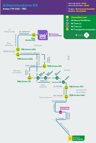 En la tercera etapa del Peribús, que comienza este domingo, seis rutas más se modificarán. Cinco para ser alimentadoras: tres en Tonalá, una en Guadalajara y otra en Zapopan; así como una ampliación, informó el secretario de Transporte, Diego Monraz.Amílcar López, director de Transporte Público detalló que serán la Alimentadora 01 (A01), antes 78, la Alimentadora 02 (A02) que sustituye la 78C, la Alimentadora 03 (A03) en lugar de la 78C, pero en una segunda parte de su recorrido, la Alimentadora 06 (A06) que sustituye la ruta 368 y la Alimentadora 07 (A07) antes 320. Así como una ampliación de la ruta C126-V1.La A01 saldrá de Barranca de Huentitán y circulará por colonias como Oblatos, San Martín, El Tapatío hasta llegar a Alfredo Barba. Contará con 18 unidades y una frecuencia de paso de siete minutos.La A02 partirá de Barranca de Huentitán y circulará por colonias como La Federacha, San Vicente, San Andrés, Tetlán, hasta llegar a San Pedrito. Contará con 19 unidades y una frecuencia de paso de 9 minutos.La A03 irá del Centro Cultural Universitario hacia Acueducto, pasando por Jardín Real, Santa Margarita Residencial o Jardines del Valle. Contará con nueve unidades y una frecuencia de paso de 11 minutos.La A06 iniciará en Barranca de Huentitán y circulará por colonias como Alamedas de Zalatitán, Los Camichines, hasta llegar a Basilio Badillo. Contará con cinco unidades y una frecuencia de paso de 12 minutos.La A07 comenzará en Barranca de Huentitán y circulará por colonias como Circunvalación Belisario, Independencia, Analco, hasta llegar a la Antigua Central de Autobuses. Contará con 12 unidades y una frecuencia de paso de 10 minutos.La ruta C126-V1 se ampliará para dar servicio al desarrollo habitacional Los Olivos, dentro del municipio de Tlaquepaque, derrotero que antiguamente era proporcionado por la ruta 380A, misma que se integró al sistema de Peribús.Monraz recordó que en la aplicación Google Maps se pueden encontrar los recorridos de cada ruta, para mayor facilidad de los usuarios.GC