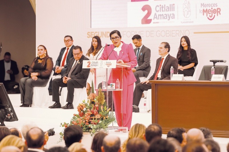 En su Segundo Informe de Gobierno como alcaldesa de Tlaquepaque, Citlalli Amaya adelantó que buscará la reelección. “Viene grandeza, viene prosperidad, viene desarrollo para todas y para todos porque en los años venideros yo continuaré como tu presidenta municipal. El apoyo no cesará”.En el evento, realizado en el Centro Cultural El Refugio, Amaya aseguró que tiene el respaldo “del deber cumplido” para contender por la reelección.“Yo dejaré mis fuerzas, mi compromiso y todo cuanto soy porque tú y tu familia estén mejor. Con la convicción y la satisfacción del deber cumplido, con la tranquilidad de saber que tenemos finanzas sanas”.Resaltó la labor que ha llevado a cabo en el municipio, como las inversiones en vialidades y colonias, los programas sociales en los que han invertido más de 200 millones de pesos y la baja en la incidencia delictiva. La presidenta municipal de Tlaquepaque, Citlalli Amaya, rindió su segundo Informe de Gobierno en el Centro Cultural El Refugio, en el cual destacó la cantidad de recursos invertidos en diversos ámbitos como la educación. En este rubro, la alcaldesa resaltó que se han invertido alrededor de 200 millones de pesos para la renovación de infraestructura de 200 planteles escolares y beneficiando a más de 100 mil estudiantes que toman clases en aquellas escuelas. “En infraestructura educativa, hemos invertido más de 200 millones de pesos que nos han permitido dar mantenimiento a 200 planteles con pintura, impermeabilización, fumigación, poda, estética, red eléctrica, red hidráulica para beneficiar a más de 100 mil alumnos. Gracias al fideicomiso del Gobierno del Estado, reconstruimos más de 15 escuelas en estos dos años. Les entregamos mochilas, útiles, uniformes y también cuidamos su salud visual”. La presidenta municipal recordó que continúan las obras para la edificación del Centro Universitario de Tlaquepaque (CuTlaquepaque) de la Universidad de Guadalajara en la zona del Cerro del Cuatro con una inversión de 73 millones de pesos. “Con una inversión inicial de 73 millones de pesos, hoy en la cúspide del Cerro del Cuatro se levanta ya un edificio que será el inicio de esta gran historia para nuestro municipio, nuestra primera universidad pública”. Citlalli Amaya destacó la reducción en la incidencia delictiva en hasta 13% respecto a 2022 en delitos que son considerados de seguimiento especial, entre ellos, están delitos como el robo a negocio, a persona, a cuentahabientes, homicidios, extorsiones, entre otros. “Estamos muy por debajo de la incidencia delictiva, en delitos de seguimiento especial, tenemos una reducción del 13.2% en comparación del año pasado, pero además, hemos bajado el robo a negocio, el robo a persona, extorsión, homicidios o robo a cuentahabientes, en general, estamos más seguros”. La presidenta municipal resaltó que, la labor para reducir la incidencia delictiva en el municipio se debe a la labor que se desempeña en el C4 municipal donde recordó la inversión de 24 millones de pesos, aunque también comentó que se está edificando la nueva sede del sistema de monitoreo para mejorar el monitoreo en tiempo real de sucesos que ocurran en el municipio. En el evento, el gobernador de Jalisco respaldó a la alcaldesa en su segundo informe y señaló que continuarán colaborando para la conclusión del Centro Universitario de Tlaquepaque el próximo año, así como la construcción de una nueva estación de la línea 4 del Tren Ligero en la colonia La Micaelita y ampliar el Peribús con una estación en la zona de Artesanos. CT