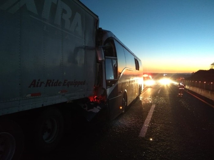 La mañana de este domingo un autobús de pasajeros chocó contra un camión de carga.El accidente ocurrió sobre el kilómetro 84.5 de la Autopista Federal en el tramo Jalostotitlán a San Juan de los Lagos.Cuerpos de rescate acudieron al sitio donde encontraron el camión de pasajeros de Ómnibus de México, que transpotaba 36 personas, de las cuales 14 resultaron lesionadas. Debido al impacto el chofer del autobus murió en el lugar.Los lesionados fueron llevados al Hospital Beata Vicentita en Tepatitlán para su atención.LS