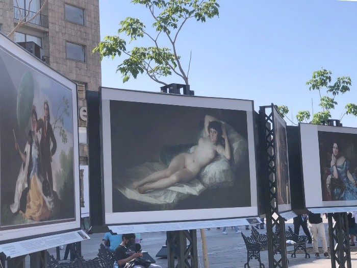 Como parte del programa “Guadalajara, capital mundial del libro” hace poco más de un mes llegó a la ciudad “El Museo del Prado en las Calles de Guadalajara”, una exhibición conformada por 56 de las obras más representativas del museo español ubicado en Madrid. El “Museo del Prado en Guadalajara” estará disponible hasta el próximo 31 de agosto y se ubica sobre el Paseo Fray Antonio Alcalde a la altura de Plaza de Armas.“Cuesta imaginar un escenario mejor que Guadalajara, con su extraordinaria riqueza patrimonial. Por ello, animo a todos a disfrutar de esta exposición y a reconocerse en las colecciones del Museo Nacional del Prado”, se lee en un comunicado ubicado al principio de la exhibición, escrito por el director del museo español, Miguel Falomir.Entre las 56 obras de arte expuestas sobre Paseo Alcalde, hay tres en particular que brillan por la fama que han alcanzado a través de los años, por lo que a la hora de visitar la mencionada exhibición vale la pena prestarles particular atención a pesar de ser reproducciones a tamaño real de las verdaderas obras expuestas en Madrid.Quizás la obra de arte más famosa del pintor español Diego Velázquez. El “Museo del Prado en Guadalajara” incluye una réplica de tamaño real (adaptada al formato rectangular de todas las obras de la exhibición) de “Las Meninas”. Según se lee debajo del cuadro, “Se trata del cuadro más famoso de Velázquez, que sobresale por la utilización de temas aparentemente realistas que esconden un complejo mundo de significados y relaciones y por ser el que mejor compendia las características de su arte, […] A la izquierda aparece el propio Velázquez, que se retira del lienzo para pensar y mirar”.Una de las obras más representativas e impresionantes del español Francisco de Goya. “Es una imagen cargada de violencia, en la que sobrecoge la mirada perdida del cruel dios, cegado por la locura y el ansia de poder, que podría ser interpretado como la personificación de un sentimiento tan humano como el miedo a perder el poder”, se lee debajo de la reproducción a tamaño real de la famosa obra de arte.El único desnudo femenino Francisco de Goya realizado alrededor del año 1800. “Según afirmaba su hijo, Goya concibió esta obra como una Venus desnuda. Pero, alejándose de la traición, la presentó de un modo realista y directo, sin alusión alguna a la mitología y mirando sin recato al espectador. [...] Su compañera ‘La maja vestida’, probablemente fue pintada unos años después y su técnica es distinta, más abreviada y simple”, describen debajo de la pintura exhibida sobre Paseo Alcalde. MR