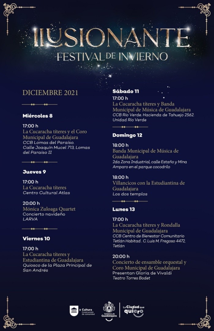 Con el encendido del árbol navideño en la Plaza Liberación, este lunes dio inicio un mes de festividades para celebrar la Navidad en el municipio de Guadalajara con “Ilusionante”.Se trata del festival de invierno que tendrá lugar en el Centro de Guadalajara de este 6 de diciembre al próximo 6 de enero en una primera etapa, y que se extenderá hacia el oriente de la ciudad a partir del día 16 de este mes.Dentro de la primer etapa, explicaron el presidente de la Canaco Guadalajara, Raúl Uranga, y el director general de la Agencia Estatal de Entretenimiento, Esteban Estrada, se contemplan ya el Nacimiento Monumental de la Plaza Liberación; el ornato del primer cuadro de la ciudad y la Casa de Santa, en el Paseo Alcalde frente a la Plaza de Armas.A partir del 9 de diciembre se contemplan presentaciones de la Orquesta Filarmónica de Jalisco en el Teatro Degollado, y cinco presentaciones de la puesta en escena de “El Cascanueces” en la zona de El Santuario y de “Los dos templos”, así como diversos espectáculos en el Paseo Alcalde.A partir del día 16, señaló por su parte el alcalde de Guadalajara, Pablo Lemus, se instalará una pista de hielo sobre el Paseo Alcalde, frente a la Glorieta de los Jaliscienses Ilustres, y una más en el Parque de la Solidaridad, además de que se instalará un mercado navideño en la Plaza de Armas y se sumará un carrusel a la Plaza Liberación.También, dijo, se presentará un nuevo videomapping en la Catedral de Guadalajara y las presentaciones de los mariachis que ya se exponen de manera habitual en el Centro Histórico contemplarán a los villancicos tradicionales, además de que el cierre diario de actividades desde ese día, será acompañado de un espectáculo de pirotecnia.De acuerdo con el gobernador del Estado, las festividades contempladas en “Ilusionante” tendrán una inversión de 40 millones de pesos, de los cuales 27.5 serán provenientes del Gobierno de Jalisco, 10 millones del ayuntamiento de Guadalajara y 2.5 por parte de la Oficina de Convensiones y Visitantes del Estado de Jalisco.También, dijo, se presentará un nuevo videomapping en la Catedral de Guadalajara y las presentaciones de los mariachis que ya se presentan de manera habitual en el Centro Histórico contemplarán a los villancicos tradicionales, además de que el cierre diario de actividades desde ese día, será acompañado de un espectáculo de pirotecnia.“Claro que 'Ilusionante' es para todas las tapatías y tapatíos, pero también para todas las personas de la Zona Metropolitana de Guadalajara, para que visiten el Centro Histórico, y por supuesto para las familias que vivien en el Oriente de la Ciudad acercándoles estos atractivos al Parque Solidaridad, además al vecino municipio de Tonalá, lo que conlleva llevarles estros atractivos a las zonas menos favorecidas de la ciudad. Estamos seguros que con todo ello vamos a hacer de Guadalajara un lugar increíble”, expresó Lemus Navarro.De acuerdo con el gobernador del Estado, las festividades contempladas en “Ilusionante” tendrán una inversión de 40 millones de pesos, de los cuales 27.5 serán provenientes del Gobierno de Jalisco, 10 millones del Ayuntamiento de Guadalajara y 2.5 por parte de la Oficina de Convensiones y Visitantes del Estado de Jalisco.Este festival de invierno, señalaron los asistentes al anuncio de su lanzamiento, beneficiará a la reactivación económica del Centro de la Ciudad, permitiendo que los negocios puedan extender su horario de servicios, sumando además la ampliación del servicio del transporte público que circula por la zona, para lo cual el secretario de Transporte, Diego Monraz, analiza qué rutas y horarios podrán beneficiar más a sus visitantes.Aunque se tomarán todas las medidas sanitarias para prevenir contagios de COVID-19, se apelará a la responsabilidad individual para que la ciudadanía no deje de usar el cubrebocas durante sus visitas a estos espacios.“La Navidad es una época significativa, no solamente porque tenemos la oportunidad de hacer una pausa en nuestros ajetreados días para estar en familia, sino porque en realidad es nacimiento, una nueva oportunidad que tenemos para llenarnos de esperanza y renovarnos. Y justo por ello celebramos que unimos esfuerzos para realizar Ilusionante, un festival que unifica los esfuerzos que cada uno hace. Porque si algo hemos aprendido durante la pandemia es que hacemos mucho más juntos que separados. Con iniciativas como esta promovemos nuestro centro, nuestra gastronomía, cultura y música, fortalecemos el tejido social, la unión familiar, e impulsamos la reactivación económica y turística de la ciudad”, añadió Raúl Uranga.GC/IM