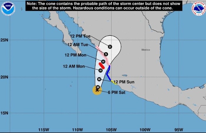 Protección Civil Jalisco informó que el huracán "Orlene", clasificado como Categoría 2, pegará en las costas de Jalisco.A través de un boletín, el organismo informó que a las 19:00 horas el centro de "Orlene" fue estimado a unos 285 kilómetros al sur-suroeste de Cabo Corrientes, Jalisco.Su movimiento es hacia el Norte, a nueve kilómetros por hora, con vientos máximos sostenidos de 165 kilómetros por hora y rachas de 190 kilómetros.“Se mantiene la probabilidad de lluvias fuertes sobre regiones costeras y serranas de Jalisco, que pudieran llegar ha ser muy fuertes de forma puntual durante la noche y la madrugada”, se lee.Para zonas de la Costa Sur, podrían presentarse rachas de viento entre 50 y 60 kilómetros por hora, dijo Protección Civil.JM