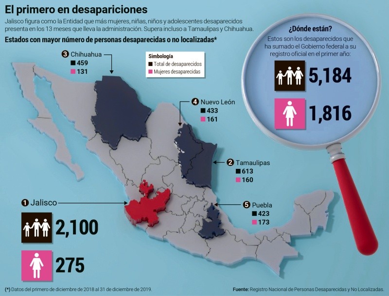 Con cuatro mil 418 registros de personas desaparecidas entre el 1 de diciembre de 2018 y el 31 de diciembre de 2019, Jalisco fue la Entidad con más reportes de todo el país, aunque también fue la que a más personas localizó: dos mil 318.Sin embargo, por las dos mil 100 que aún no son ubicadas, el Estado es líder nacional de desaparecidos, lo que también implica que es el más rezagado, reconoció el coordinador del Gabinete de Seguridad del Gobierno estatal, Macedonio Tamez, durante una entrevista que concedió a un medio radiofónico.“Reconozco: no hemos avanzado. Tal vez el único avance que podemos decir es que ahora sí encontramos lugares clandestinos de inhumación que antes no se buscaban”.Según comentó, la autoridad estatal se ha enfocado en hallar fosas clandestinas, pero admitió que aún hay muchos desaparecidos. “Son demasiados; es una situación atroz”.Antier, el subsecretario de Derechos Humanos, Población y Migración, Alejandro Encinas, dio a conocer el último corte de desaparecidos desde la llegada de la nueva administración federal, y el total desde los años 60. Y desde entonces, Jalisco es la segunda Entidad con las cifras más altas, pues suma nueve mil 286. Sólo está detrás de Tamaulipas, que reporta 10 mil 032 casos.Organizaciones ven cifras “maquilladas”Las cifras oficiales de personas desaparecidas en el país no convencen a las organizaciones que día a día buscan a sus familiares. Éstas afirman que los casos son muchos más. “Siguen ocultando cifras. Vemos el montón de gente que llega al colectivo; denuncias que se dan a diario, de tal manera que no se puede ocultar”, asegura Guadalupe Aguilar, de Familias Unidas por Nuestros Desaparecidos Jalisco (Fundej).Luis e Iván desaparecieron en 2017. Sus familiares lo reportaron de inmediato a la Fiscalía del Estado, pero no les recibieron la denuncia. ¿El argumento? Debían esperar 72 horas, pese a que las primeras 24 son las más importantes para localizar a una persona con vida, lamentó Adriana, sobrina de Luis, quien tiene más de tres años sin saber algo de su familiar.En octubre de ese año, Luis y su trabajador Iván, quienes se dedicaban a la compraventa de autos, salieron a mostrar una camioneta a un presunto comprador en el terreno donde él guardaba sus vehículos, en la colonia Monumental, en Guadalajara.Salió de casa junto con su empleado y sus perros, y le avisó a su madre a dónde se dirigía. “Como a la hora, la mamá recibe una llamada. Nada más le dijo Luis: ‘dile a Vero (su esposa) que venga por los perritos’. Esa fue la última llamada que recibió”.Un par de horas después, Verónica llegó a la casa y le avisaron del encargo. Fue al terreno, encontró a las mascotas adentro de un auto y los sacó. No vio rastros ni de su marido ni del empleado, por lo que comenzó a llamar a los familiares y amigos por si sabían algo de él. Al no saber nada, acudió a la Fiscalía a denunciar.“Vero fue a levantar una denuncia por desaparición, pero allí le dijeron que hasta las 72 horas podían dar la orden para buscarlo. Entonces, mi tía se regresó toda angustiada, investigando con la familia de Iván. Nunca supimos ni quién le habló porque no se encontró el celular”.Sin apoyo de la autoridad, trataron de todo. Incluso acudieron a una vidente, quien los mandó a un terreno donde él estaría golpeado, pero en ese lugar sólo encontraron ropa. “Cuando pasaron las 72 horas fue otra vez a la Fiscalía y ahora sí levantaron el acta”.Pero la denuncia, compartió, fue más bien un interrogatorio para la esposa por parte del Ministerio Público. “A qué se dedicaba, si tenía deudas, a quién le debía, que si estaba segura de en qué trabajaba, si estaba en drogas… un hostigamiento”. Y tras esa entrevista, sólo la llamaron para ratificar la denuncia y no la volvieron a contactar.Por sus propios medios, la familia fue al Servicio Médico Forense, a los hospitales y hasta a la penitenciaría, pero no tuvo éxito. Las autoridades, afirmó, nunca realizaron la labor de búsqueda para informarles. Ni siquiera les brindaron ayuda como víctimas, pues Verónica incluso pagó a un psicólogo y a un tanatólogo para que la ayudaran.Mientras Jalisco se posicionó en primer lugar nacional por el número de personas desaparecidas durante los últimos 13 meses, en el Congreso del Estado las reformas a las leyes locales sobre el tema llevan casi dos años en el archivo.La armonización de la legislación estatal con la Ley General en Materia de Desaparición Forzada de Personas debió quedar aprobada desde julio de 2018, según los plazos marcados por la Cámara de Diputados. Pero los legisladores locales no cumplieron ese plazo y el retraso se heredó de la LXI a la LXII Legislatura estatal.Los actuales diputados locales, quienes tienen 14 meses en el cargo, aprobaron en diciembre realizar tres mesas de trabajo. Esperaron a la última semana de ese mes para proponer que se analice una nueva legislación estatal sobre Declaración Especial de Ausencia por Desaparición de Personas, una iniciativa de Ley de Atención a Víctimas y la Iniciativa de Ley de Personas Desaparecidas.Esas reuniones se realizarán los días 29, 30 y 31 de enero.En abril de 2019, los legisladores de Jalisco intentaron aprobar un proyecto de reforma en la materia que generó inconformidad entre víctimas, familiares y activistas, quienes refirieron no haber sido consultados.Tras los cuestionamientos, el asunto se archivó y no se volvió a tocar hasta octubre, cuando el gobernador Enrique Alfaro remitió al Poder Legislativo propuestas en la materia. Los diputados sostuvieron que las dictaminarían y aprobarían antes de su periodo vacacional de fin de año, pero eso no sucedió. Aplazaron el tema hasta finales de este mes.El pasado 28 de octubre, cuando se anunció el arranque de la plataforma de Personas Fallecidas Sin Identificar (PFSI), se aseguró que ésta sería alimentada con lo