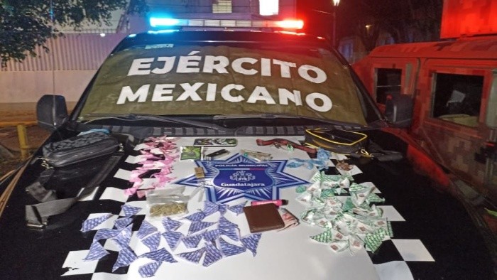 Elementos de a Policía de Guadalajara y del Ejército Méxicano detuvieron a dos hombres y les aseguraron cerca de 100 dosis de presuntas drogas en el corredor de Chapultepec.La Comisaría tapatía informó que lo anterior se dio como parte del Operativo Puma que se implementa en en ese punto.Los hechos ocurrieron en Avenida Chapultepec, a la altura de Mexicaltzingo, en la Colonia Americana, donde los elementos vieron a dos hombres que llevaban mariconeras y tenían una actitud evasiva."Los uniformados les marcaron el alto, y luego de una revisión conforme al protocolo les aseguraron cerca 100 dosis de presuntas drogas entre las que había presunta marihuana y sustancias con las características de la piedra base, la cocaína, y el ‘crystal’", se dio a conocer por medio de un comunicado.Los hombres detenidos se identificaron como Carlos “N”, de 20 años y Christofer Osmar “N”, de 22 y fueron llevados ante el Ministerio Público.
