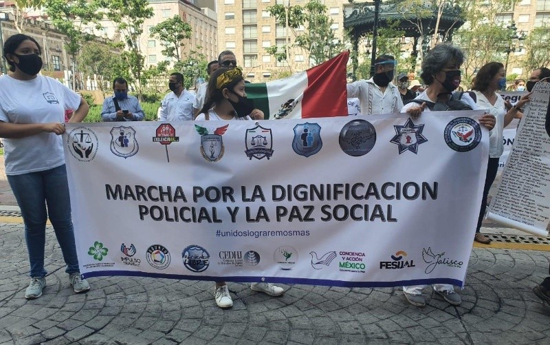 Para exigir sus derechos laborales, uniformados de distintas comisarías del Estado, sus familiares y colectivos que integran la Asociación Civil Unidos por la Seguridad marcharon de la Glorieta Niños Héroes hacia Palacio de Gobierno.En el sitio entregaron un pliego petitorio con diez puntos. Ellos solicitan una jubilación digna, el derecho a servicio médico para todos los uniformados y una homologación en su salario mensual a 18 mil 500 pesos.Gloria Moya, miembro de la Asociación Civil mencionó que algunos temen represalias por lo que no se manifestaron, pero “existen uniformados con salarios de cinco mil pesos mensuales, otros que no cuentan con seguridad social y también hay familias que no recibieron apoyo luego de su uniformado murió en el ejercicio de su deber”.Otras de sus peticiones es el respeto en el debido proceso para los dos integrantes de la Fiscalía que han sido acusados de dirigir el levantamiento de jóvenes durante las protestas por la muerte de Giovanni López. Al igual, piden sean presentados ante la justicia las personas que agredieron a los uniformados durante las manifestaciones. Gabriel Lomelí, uniformado e integrante de la Asociación Civil pidió disculpas a la ciudadanía en nombre de los uniformados y reconoció que, “existen personas dentro de los cuerpos policiales que se excusan en el uniforme para cometer faltas a los derechos humanos, a ellos les decimos que los vamos a sacar, somos más los policías buenos”.Los uniformados también denunciaron que no les entregan el equipo de protección necesaria para reducir un posible contagio de COVID-19 y que se encuentran trabajando más horas durante la contingencia sin recibir un estímulo económico.NR
