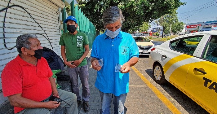 Camilo comenzó su jornada a las 5:00 de la mañana. Tomó su taxi y se dirigió hacia la clínica 110 del IMSS donde se encuentra el Sitio 23 del que forma parte. A las 13:00 horas solo había hecho un viaje que les dejó 40 pesos en el bolsillo. Él y dos de sus compañeros esperaban pacientes en la entrada de la unidad médica para ver si algún familiar o paciente requerían el servicio, sin embargo, pasaba el tiempo sin un nuevo viaje para él o sus compañeros.José, taxista del mismo sitio, empezó desde las 7:00 y para la misma hora llevaba también 40 pesos.Para él no solo influyó la baja de personas en la calle por la contingencia por el coronavirus, sino que también se sumó la falta de asistencia de derechohabientes a la clínica, pues al ser anunciada como un hospital de reconversión para la atención de pacientes con COVID-19, el IMSS comenzó a redirigir a los pacientes con otros padecimientos a otras unidades.Ambos taxistas y sus compañeros coincidieron que es mejor esperar en el sitio hasta que llegue un pasaje que salir a “ruletear” por la calle, ya que de esta forma no gastan más gasolina de la que deben. “Antes que llevar de comer a nuestras casas hay que darle de comer al carro, porque sin gasolina no trabajamos”, agregó Camilo.Él y sus compañeros prefieren trabajar más allá de un turno y esperar todo el día para sacar al menos 120 pesos que puedan llevar a sus hogares, aunque tengan que estar desde temprana hora y regresar noche a sus casas. “Mejor llegar con los 100 o 120 pesos de dos o tres viajes de todo el día que llegar con las manos vacías”, dijo José.Mientras los ruleteros esperan platican con Ángel, un joven proveniente de Salamanca Guanajuato, quien todos los días duerme afuera de la clínica para dejar que su hermana, quien cuida a la señora, duerma en el hospital.Alex contó que hace 15 días asaltaron a su mamá y a su hermana por la zona del parque Agua Azul y el susto hizo que a la señora le diera una embolia. Primero la llevaron al Centro Médico de Occidente, pero al avisar de la reconversión de la unidad la trasladaron a la clínica 110, la cual, está en proceso de convertirse en una unidad donde solamente se atenderán a pacientes de COVID-19.“No sé a donde la van a mandar ahora mientras tanto aquí seguimos todo el día. A veces comemos y a veces no, porque los policías ya no dejan que nos traigan donativos de comida porque dicen que se hacen aglomeraciones”, añadió el joven.Otros de los afectados por la contingencia y la paulatina redirección de pacientes con otros padecimientos a otras clínicas de salud son los comerciantes, como Antonio y Lucía, quienes venden tacos afuera de la clínica. Durante este domingo tuvieron apenas tres clientes. “Hoy yo invertí 600 pesos y apenas he sacado unos 120. No es solo que no haya personas, sino que además no tienen dinero para comer. Aquí nos llegan familiares que tienen internos en la clínica que a lo mucho hacen una comida al día según lo que nos cuentan”, expresó.Mientras tanto, todos los ingresos a la clínica 110 del IMSS permanecen resguardados por elementos de seguridad privada, policías del Estado y la Guardia Nacional, con la finalidad de mantener el orden y la seguridad de los pacientes que se encuentran dentro del inmueble. Por su parte un helicóptero de la Secretaría del Estado sobrevuela la zona mientras pide a la ciudadanía permanecer en casa. “Mientras menos gente haya en las calles, menos gente habrá en los hospitales”, se escucha.LS