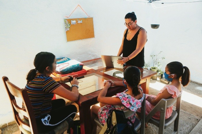 Paulina es psicóloga y auxiliar de educación. Desde que se suspendieron las clases debido a la pandemia por el coronavirus, sus tres hijas tuvieron que realizar las tareas y actividades desde su casa. Por ello es que, pensando en que no perdieran la rutina y de desacostumbraran al trabajo en el aula, colocó la mesa del comedor, cuatro sillas y un pizarrón para explicar las dudas y anotar sus asignaciones.La psicóloga considera que esa es una buena estrategia para que las pequeñas no pierdan sus hábitos de estudio, pues de lo contrario podrían distraerse en juegos y dejar en segundo término la escuela.“Para mi es más sencillo porque muchos años di clases, ya sé qué tipo de actividades ponerle a cada una para que aprendan mejor según sus habilidades. Lo bueno de todo es que las maestras del colegio siguen trabajando y nos han mantenido al tanto de sus tareas, también nos mandaron ya sus libros de texto en PDF para seguir con el curso”, expresó Paulina. Su hija Frida, quien cursa el sexto grado tomó clases en línea, mientras que a Luna y Ana sus profesoras les asignaron actividades que debían reenviar por correo, aunque también cuentan con tableros específicos en la plataforma escolar de Google.Si bien las niñas aprovecharon las dos semanas de vacaciones, las tres están listas para regresar al salón de clases instalado en el patio de su casa. Llevarán mochila y cuadernos como si asistieran a la escuela de manera normal.En Jalisco más de un millón de niños y niñas en educación básica deberán regresar a clases de manera virtual. SEPEl titular de la Secretaria de Educación Pública, Esteban Moctezuma, solicitó a los maestros que se comuniquen una vez a la semana con sus alumnos para dar seguimiento a las tareas requeridas.JL
