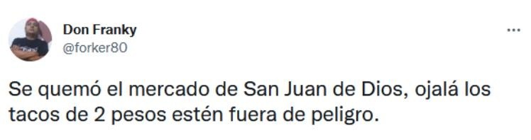 Te presentamos dentro del Resumen 2022 aquello que se hizo más viral en EL INFORMADOR durante el año que está por terminar.Fue la madrugada del jueves 31 de marzo cuando se registró un incendio en el Mercado Libertad, también conocido como San Juan de Dios, en Guadalajara.De inmediato, la nota sobre el hecho se volvió una de las más leídas del mes, y los tapatíos reaccionaron en redes sociales al conocer la noticia del incendio que según reportes de las autoridades comenzó alrededor de las 02:30 horas."Siento muy feo", escribieron los cibernautas en sus cuentas de Twitter. OF