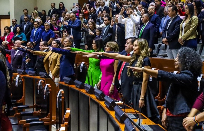 Diputadas y diputados que integrarán la próxima legislatura en el Congreso de Jalisco rindieron protesta esta mañana en el Legislativo estatal a falta de una semana para asumir sus encargos.A falta de resolver dos impugnaciones, que deberán ser resueltas por la Sala Superior del Tribunal Electoral del Poder Judicial de la Federación (TEPJF), Morena y aliados tendrán mayoría en la siguiente legislatura con 20 legisladores mientras que Movimiento Ciudadano tendrá 11 curules; el PAN 5 escaños y el PRI solamente dos.Entre las primeras tareas que tendrá la legislatura número 64 será la recepción, discusión y votación del proyecto de presupuesto de egresos de 2025, el cual deberá ser entregado antes del 1 de noviembre por el gobernador electo, Pablo Lemus, así como el sexto informe de gobierno del Ejecutivo estatal, la glosa de dicho informe y el cambio de administración para el día 6 de diciembre.“Nosotros estaremos en comunicación. Nosotros estaremos dispuestos al diálogo, sabemos que es de máximo interés. Será un cierre de año movido, estoy en confianza de que los compañeros están puestos para ser una gran legislatura”.Miguel de la Rosa, futuro coordinador de Morena, lamentó la renuncia a la bancada de Alejandro Puerto con lo que, de momento, Morena se quedaría con nueve integrantes; sin embargo, se ha anunciado la integración de Enrique Velázquez, de Hagamos y de las diputadas de Futuro, Tonantzin Cárdenas y Mariana Casillas a la fracción morenista, pero deben concretar acuerdos.“Estamos en un proceso de construcción de acuerdos y tenemos de aquí al 1 de noviembre. Hay buenas conversaciones y avances”. El legislador Alejandro Puerto rindió protesta luego de haber renunciado a la bancada de Morena, sin embargo, se espera que vote a favor de las iniciativas de su ex partido.“Notifiqué hoy por la mañana que seré diputado sin partido. Aclarar que no me sumo a ninguna otra bancada, voy a luchar para que en Jalisco haya justicia y que se cumplan los principios de nuestro movimiento que son defender a Jalisco”.La Mesa Directiva para el primer año de la Legislatura quedará integrada de la siguiente manera: El Congreso será integrado por las siguientes personas y bancadas:Miguel de la Rosa Figueroa - coordinador Marta Estela Arizmendi Itzul Barrera Rodríguez Alberto Alfaro García / S. Victor Abraham Gonzalez Rodriguez Alejandro Barragán Sánchez María Candelaria Ochoa Ávalos Brenda Guadalupe Carrera García Norma López Ramírez (Cecilia Márquez impugna) Martín Franco CuevasEmmanuel Alejandro Puerto CovarrubiasFS