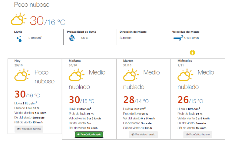 La Comisión Nacional del Agua (CONAGUA), fuente oficial gubernamental, emitió el pronóstico del clima para el día 30 de octubre del 2023.De acuerdo con los modelos meteorológicos se espera que en el Área Metropolitana de Guadalajara amanezca con cielo nublado, y temperatura máxima de 27 grados en la tarde. Además, se calcula un 95 por ciento de probabilidad de lluvias.En el Pacífico Centro se estima que prevalezca un cielo nublado por la mañana y durante la tarde, con chubascos y lluvias puntuales fuertes en la región, las cuales estarán acompañadas de descargas eléctricas. Durante la tarde, habrá ambiente cálido a caluroso. Viento del componente oeste de 10 a 25 km/h en la región, con rachas de hasta 40 km/h en zonas costeras de Jalisco, Colima y Michoacán.Mantente al tanto de las noticias y únete a nuestro canal de Whatsapp.MM