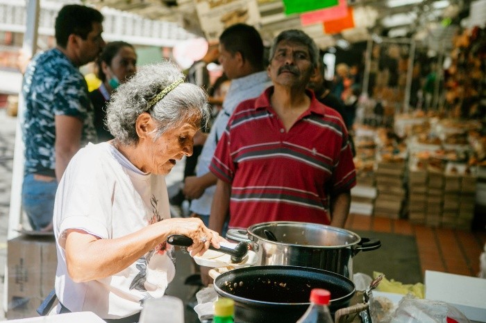 Con ayuda de sus hermanos, hijos, sobrinos, nietos y hasta de las trabajadoras y trabajadores, desde hace tres días María Esther López ha regalado desayuno y comida para las y los locatarios del Mercado Libertad, conocido como "San Juan de Dios", que se vieron afectados por el incendio del pasado jueves, así como a las y los trabajadores que se encargan de las labores de limpieza de la zona siniestrada.Desde hace décadas Esther ha vendido huarache tradicional de cuero y vaqueta en el Mercado San Juan de Dios. Con la ayuda recibida ha repartido diariamente, desde el día del incendio, alrededor de 20 kilos de alimento como frijoles, tacos dorados, de guiso, sopa de arroz y hasta tamales, sin contar el agua fresca y los refrescos que también ha ofrecido para apoyar así a sus compañeros comerciantes que lo perdieron todo."El 2 de abril de 1972 a las 12 del día, comenzó el incendio que nos dejó sin nada. Todo se llevó, no quedó ni un clavito ni una hebilla de huarache; entonces dijeron que nos iban a apoyar, pero no se nos dio nada. Todo lo levantamos de cero con base en nuestro trabajo y el empeño que le echamos. Por eso estoy haciendo esto, porque yo ya lo viví, yo sé lo que se siente perderlo todo", dijo la mujer.Hasta ahora, contó, han invertido alrededor de 10 mil pesos para entregar esta comida que también se ofrece a las y los trabajadores que limpian el área del mercado siniestrada con apoyo de los mismos comerciantes que, en charolas, lo llevan hasta el lugar donde se encuentran laborando. También han recibido ayuda de personas que al paso les ofrecen recursos u otros alimentos, los cuales no han sido cuantificados."Yo sentía que no ajustaba, hay tanta gente, pero gracias a Dios ha salido, y con la ayuda de todos. Ahorita alguien llegó y nos dio 200 pesos, y con esos dije 'váyanse a traer aunque sea más frijoles, chiles, a ver qué más falta'. Todos me han agradecido, me han apoyado. Cosa maravillosa, tan grande, maravilloso lo bonito que se siente", expresó la mujer.El alimento ha sido bien recibido por las y los comerciantes afectados, quienes a cada plato agradecían a Esther, la abrazaban, e incluso le ayudaban a servir a sus demás compañeros."Ella es una gran compañera, pero primero que nada es una gran mujer. Es un ejemplo para todas las que trabajamos aquí, porque San Juan de Dios está hecho a base de mujeres que somos bien fregonas y luchonas, y si alguien ha sido nuestra maestra para no dejarnos, para no caernos,es Esther, y esta acción es una ayuda muy grande para los compañeros que lo perdieron todo. Nos unimos a ellos porque somos una gran familia, y nos vamos a levantar juntos", dijo por su parte Laura Villagrana, comerciante del mercado.Por último, Esther se dijo sorprendida por las labores de limpieza que han hecho las y los trabajadores del ayuntamiento, especialmente los bomberos y el personal de Aseo Público, a la par de los locatarios y voluntarios, quienes tienen ya tienen prisa por abrir para reiniciar sus ventas ante las pérdidas ocasionadas por el siniestro que consumió 426 locales del mercado. JL