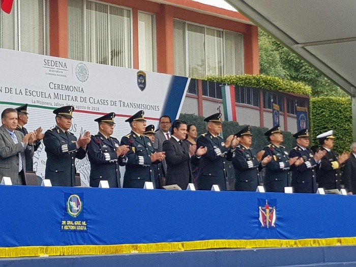 Con la presencia del Secretario de la Defensa Nacional, Salvador Cienfuegos, 302 alumnos de la Escuela Militar de Transiciones y 110 más de la Escuela Militar de aviación se graduaron esta mañana.Se trata de 97 militares que ascendieron a sargentos primeros de transmisiones, 205 a sargentos segundos de transmisiones y cinco a terceres maestres especialistas en comunicaciones navales becarios de la Secretaría de Marina, todos, graduados de la Escuela Militar de Transiciones.Por su parte, fueron nombrados un capitán segundo Piloto Aviador, un teniente piloto aviador, 91 subtenientes pilotos aviadores, un becario de la República de Guatemala, un becario de la República de Panamá, además de 10 subtenientes Meteorólogos y cinco becarios de la Secretaría de Marina."Reconozco en ustedes gente dedicada, profesional, que tiene pasión, entrega, dedicación, disposición para que las fuerzas armadas sigan cumpliendo de la mejor manera con sus tareas (...) sin ustedes esto no podría funcionar, de este tamaño es la importancia de la responsabilidad que hoy adquieren", expresó Salvador Cienfuegos.Durante los actos protocolarios de ambas ceremonias, los respectivos directores ofrecieron algunas palabras de agradecimiento y motivación y exhortaron a los egresados a cumplir con la misión de proteger a la ciudadanía mexicana por sobre todas las situaciones. Además, tras la entrega de títulos y reconocimientos, se nombraron a los tres mejores promedios en cada una de las categorías."Nos dan un adiestramiento principalmente basado en los valores, que para mí es fundamental porque esos valores no sólo nos hacen mejores ciudadanos, sino que nos hacen mejores militares, incluso nos hacen desarrollar habilidades que no teníamos: uno de ellos es el valor, hay quienes tienen miedo a ciertas cosas y aquí uno los afronta porque uno quiere cumplir su sueño", expresó Luis Ángel Muñoz Guzmán, capitán segundo de la fuerza aérea piloto aviador, quien obtuvo el primer lugar en su grado. A partir de ahora, el egresado proveniente de la Ciudad de México esperará a que le sea asignada una base donde operará al servicio de la Nación.El evento fue presidido también por el gobernador del Estado Jorge Aristóteles Sandoval y se llevó a cabo en las instalaciones de ambas escuelas, cuya sede se encuentra en Zapopan, Jalisco. Además de los directores y servidores de ambas escuelas, los graduados contaron con la presencia de sus familiares, quienes llenaron de aplausos cada uno de los nombramientos hechos durante ambas ceremonias. OA