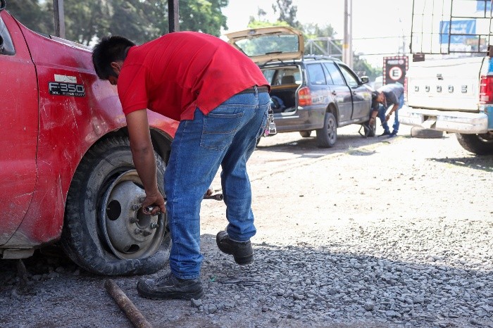 Baches de todos los tamaños aparecieron sobre la carretera a Chapala en dirección al Aeropuerto Internacional de Guadalajara lo que ha provocado afectación a los automovilistas.Esta mañana por lo menos cuatro unidades se vieron afectadas por caer en uno de tantos hoyos que hay en este trayecto. "Hace unos minutos venía manejando y tenía un carro de frente había un bache y el carro alcanzó a esquivarlo pero yo no pude y caí al bache, se me daño la llanta y el rin”, dijo David.Samuel fue otro automovilista que se vio afectado por el mal estado de esta carretera que es muy transitada. “Yo venía circulando y el carro de adelante se orilló yo no alcancé a ver y caí a un bache se quebró un birlo y se me cayó la tapadera del rin quedó arriba del arbusto”, dijo.“Eso es peligroso puede provocar accidentes imagínate unos se frena y llega un tráiler entonces te puede chocar o matar”, añadió. Otro automovilista circulaba en dirección al aeropuerto a las nueve de la mañana cuando también cayó a un bache. “Vi un bache y lo esquive y más adelante había otro y ya no pude pasando el puente se me empezó a salir el aire y me orillé”, explicó Armando.Roberto fue otro automovilista que este miércoles tuvo la mala suerte de caer a un bache. “Yo venía en el carril de baja velocidad y no pude esquivar el bache porque venía un tráiler a un lado, la llanta estaba casi nueva y la tronó”. El entrevistado lamentó el mal estado de la carretera y el peligro que corren al estar cambiando las llantas. “Pedimos mantenimiento a las carreteras, el gobierno recibe mucho dinero y no es posible que no le den mantenimiento”, agregó Roberto.Debido a la gran cantidad de baches sobre la carretera a Chapala los llanteros ubicados en la zona cada vez tienen más clientela. “Se están ponchando muchísimo ahora nos hemos quedado las 24 horas porque llega mucha gente todo el rato ha estado llegando automovilistas”, dijo Carlos un llantero.La Secretaría de Infraestructura Comunicaciones y Transportes del gobierno federal es la responsable de mantener en buen estado esta carretera. Los llanteros explicaron que normalmente vienen cada semana a tapar los baches que aparecen, pero esta semana no se han hecho presentes las cuadrillas.FS