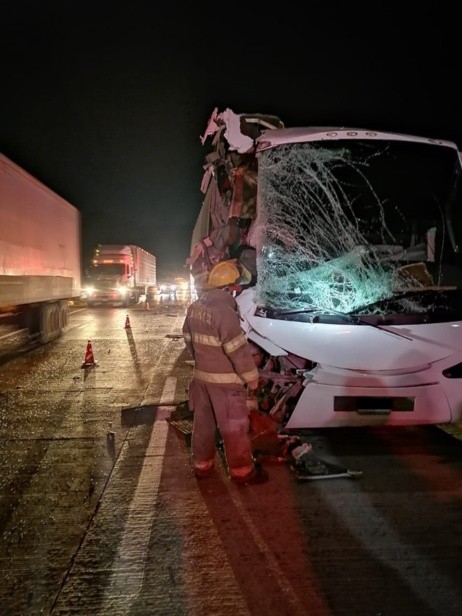 Un camión de pasajeros que circulaba por el Macrolibramiento chocó contra un tráiler dejando a cinco personas lesionadas. El accidente fue en el municipio de Tlajomulco.El percance fue reportado a bomberos municipales a las 4:40 horas en la vía mencionada a su cruce con la carretera a Morelia, por Buenavista.Al momento que arribaron los rescatistas observaron a un autobús, color blanco, que viajaba con 49 pasajeros, de los cuales cinco resultaron lesionados.El chofer del camión relató a los bomberos que chocó contra un tráiler, cuyo operador decidió huir con rumbo desconocido.Los heridos fueron atendidos por paramédicos de los Servicios Médicos Municipales en el lugar, sin necesidad de ser trasladados a un puesto de socorro.Posteriormente, el vehículo fue retirado por oficiales de la Guardia Nacional división Caminos, además que no se registró tráfico en el área o alguna otra incidencia.GC