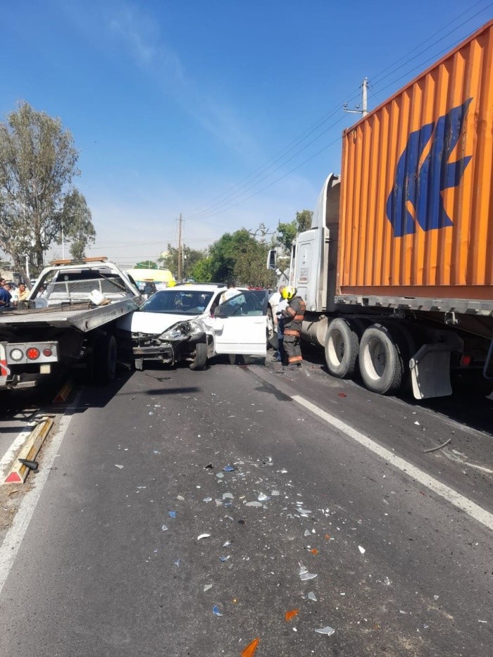 Un siniestro vial en el que participó el conductor de un tráiler de doble remolque, dejó como saldo cuatro personas lesionadas y otros siete automóviles afectados, en la colonia Lomas del Paraíso, en Guadalajara.El percance sucedió al cruce de las calles Periférico y Experiencia, aproximadamente a las 10:30 horas, cuando un vehículo de carga pesada impactó a otros siete coches.Al sitio acudió personal de Protección Civil de Guadalajara y Zapopan, junto con paramédicos de la Cruz Verde y Roja, quienes auxiliaron a cuatro personas que resultaron con lesiones leves.Los afectados conductores involucrados esperaron a la aseguradora del camión de carga pesada para resolver el tema, los lesionados no requirieron ser trasladados para atención médica.Mantente al día con las noticias, únete a nuestro canal de WhatsAppFS