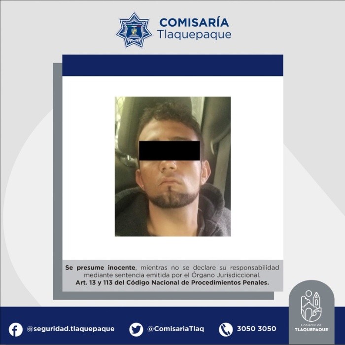 Cuando intentaba escapar ocultando un arma de fuego, fue detenido un sujeto en la Colonia El Campesino en Tlaquepaque, no contaba con permiso de portación.Los hechos se registraron alrededor de las 14:00 horas en la colonia mencionada cuando elementos de la Policía Preventiva de San Pedro Tlaquepaque observaron a un hombre con actitud sospechosa arriba de una motocicleta, el individuo al ver a los policías huyó.Los gendarmes persiguieron al sospechoso dándole alcance metros adelante en el cruce de las calles Francisco Corona y San Miguel; al realizarle la revisión de rutina correspondiente se le localizó fajada a la cintura una pistola tipo escuadra del calibre .380 con cinco cartuchos útiles, también se le aseguró la motocicleta en la que intentó escapar.El ahora detenido de aproximadamente 35 años fue puesto a disposición de la Fiscalía del Estado de Jalisco, donde determinarán su situación legal correspondiente.Si te interesó esta noticia y quieres saber más, entonces descarga y descubre INFORMAPlus, la aplicación digital de EL INFORMADOR, en donde tenemos contenidos exclusivos, seleccionados por nuestros editores, para darles una experiencia más completa a los lectores. Descarga la aplicación y pruébala GRATIS por treinta días. Para iOS: https://apple.co/35jaVgbPara Android: https://bit.ly/3gwVSEVJL