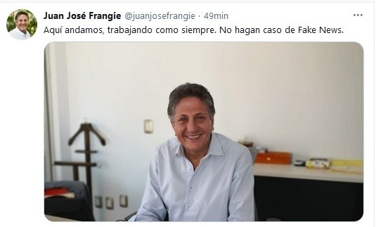 El precandidato de Movimiento Ciudadano (MC) a Zapopan, Juan José Frangie, desmintió los rumores que surgieron sobre un posible secuestro o atentado a su persona tras la balacera que se vivió este lunes en un restaurante ubicado en la avenida Real Acueducto, en Zapopan.Horas después del suceso, el emecista compartió una imagen en sus redes sociales donde pidió en no hacer caso de los "fake news" y señaló que él se encuentra "trabajando como siempre"."Aquí andamos, trabajando como siempre. No hagan caso de Fake News", escribió Frangie en la publicación.En otro tuit escribió: "Hay rumores de que yo estaba en el lugar y que se trata de un escolta asignado a mi protección, lo cual es falso".El aspirante confía en el Gobierno de Zapopan y en la Fiscalía del Estado para esclarecer los hechos."No permitamos que la contienda electoral se convierta en pretexto para politizar los temas de seguridad pública", finalizó.La balacera que se registó en un restaurante ubicado en la avenida Real Acueducto, en Zapopan, dejó como saldo tres personas lesionadas y una persona, al parecer, privada de la libertad.Los hechos ocurrieron poco antes de las 13:00 horas. De acuerdo con los reportes de la Comisaría de Zapopan sujetos armados que llegaron a bordo de dos vehículos particulares ingresaron al restaurante en busca de un hombre, quien iba acompañado, al parecer, por sus escoltas.Por el hecho se desató un enfrentamiento de arma de fuego que dejó como saldo a dos trabajadores de lugar lesionados de bala, así como a un policía de Zapopan que se hallaba en su descanso, quien trató de responder al hecho.El lugar fue resguardado por personal de la Policía de Zapopan, de la Guardia Nacional y del Ejército mexicano; hasta el momento no se ha informado la captura de los delincuentes, quienes portaban chalecos antibalas y equipo táctico.jb