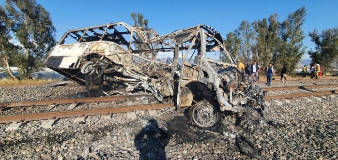 La Unidad Estatal de Protección Civil y Bomberos de Jalisco (UEPCBJ) informó de un choque ocurrido esta tarde entre un camión de transporte de personal y el tren de carga.En el accidente resultaron al menos dos personas fallecidas. Lo anterior ocurrió sobre una brecha que cruza las vías y la autopista Guadalajara-Colima, en límites de Zapotlán El Grande y Gomez Farías.Al lugar también acudieron bomberos de Ciudad Guzmán.