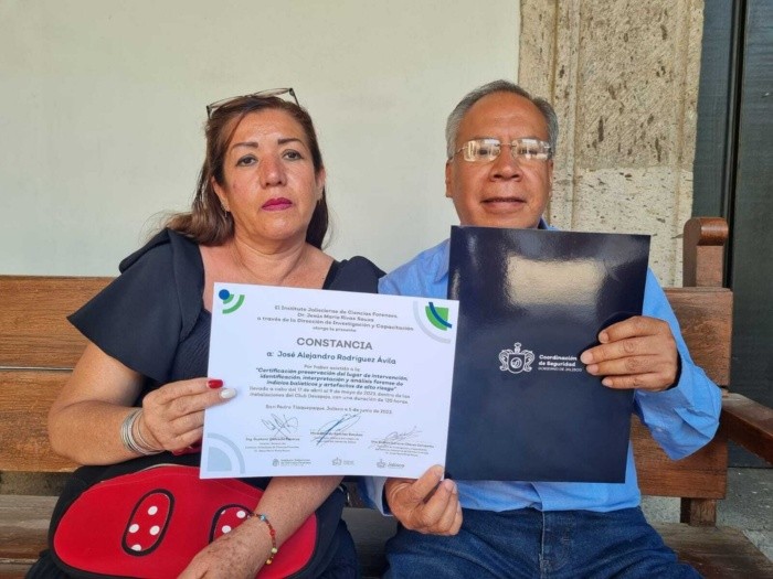 La mañana de este lunes se entregaron certificados que acreditan la capacitación en “Preservación del Lugar de Intervención, Identificación, Interpretación y Análisis Forense de Indicios Básicos y Artefactos de Alto Riesgo” a 90 elementos de corporaciones como Fiscalía Estatal, Secretaría de Seguridad Pública, Comisaría Vial y policías de Guadalajara, Zapopan, Tlaquepaque y Tonalá.Dicha capacitación fue impartida por personal del Instituto Jalisciense de Ciencias Forenses (IJCF) y tiene como finalidad que los miembros de estas corporaciones cuenten con más y mejores herramientas en disciplinas periciales que permitan generar un trabajo más ágil en lo que al procesamiento del lugar de los hechos se refiere y el correcto levantamiento de indicios.El adiestramiento se desarrolló con un plan de estudios teórico y práctico de 120 horas, y permitirá a los policías contar con las habilidades que les permitan, como primeros respondientes en un incidente, contar con los conocimientos necesarios de fijación de un indicio y procesamiento de una escena, lo que impactará de manera positiva en el incremento en detenciones legales y vinculaciones a proceso.TAMBIÉN LEE: Así viene la semana; este es el día con más probabilidad de lluvia“Más allá de un número, de que hoy, más posibles responsables e imputados, enfrenten una responsabilidad penal que pronto se va ver convertida en una sentencia, ese es el tamaño de la importancia de esta certificación”, señaló Ricardo Sánchez Beruben, Coordinador General Estratégico de Seguridad.“La implicación de esto es que el policía uniformado, municipal, o investigador, tiene ya los conocimientos y la acreditación del Instituto Jalisciense de Ciencias Forense como un replicador de las disciplinas periciales, esto que nos permite, uno generar una agilidad en el procesamiento en el lugar de los hechos, fijar los indicios de la mejor manera como lo fijaría el perito, o el propio Ministerio Público o el policía investigador y así agilizar y tener más resultados en la procuración de justicia. Con esta capacitación el policía tendrá los conocimientos básicos y mínimos para fijar o incluso cuando es una situación de urgencia como un homicidio culposo por un hecho de tránsito, ellos pueden mover, asegurar, fijar y dar la información al Ministerio Público y desahogar el punto”.Se hizo también el reconocimiento post mortem al policía investigador de la Fiscalía del Estado, José Alejandro Rodríguez Ávila, quien falleció a los 26 años en un accidente automovilístico el 5 de mayo de este año en una carretera de Tepic, estaba a punto también de certificarse, el reconocimiento lo recibieron sus padres José Alejandro Rodríguez Zamorano y Lorena Ávila Rodríguez.“Es uno de los mayores logros que ha tenido mi hijo y que en paz descanse, y lo está viendo desde el cielo, muy orgullosos de él, siempre seguía sus procesos de formación y una de sus intenciones era llegar a la Fiscalía General de la República por eso le dedicaba tanto tiempo en capacitación, a través de su profesión era parte de lo que él quería y en algún momento nos comentó que quería llegar a la FGR”, señaló el padre orgulloso.Ricardo González uno de los 90 policías certificados se mostró satisfecho por adquirir nuevos conocimientos que servirán al momento de procesar indicios en el lugar del delito.“Sin duda van a abonar al caudal de conocimientos que ya teníamos y son muy técnicos en cuanto a la aplicación en el lugar de los hechos, únicamente siempre nos limitamos a hacer la investigación, después de que ocurrieron los hechos, ahora desde el momento que se está cometiendo un presunto hecho delictivo, vamos a poder interpretar de manera correcta el escenario, vamos evaluar los indicios como deben de ser fijarlos, recolectarlos y documentarlos”.La entrega de Certificados realizada en Palacio de Gobierno, fue encabezada por el Secretario General de Gobierno, Enrique Ibarra Pedroza y también contó con la presencia del Secretario de Seguridad del Estado, Juan Bosco Agustín Pacheco Medrano así como comisarios metropolitanos. YC
