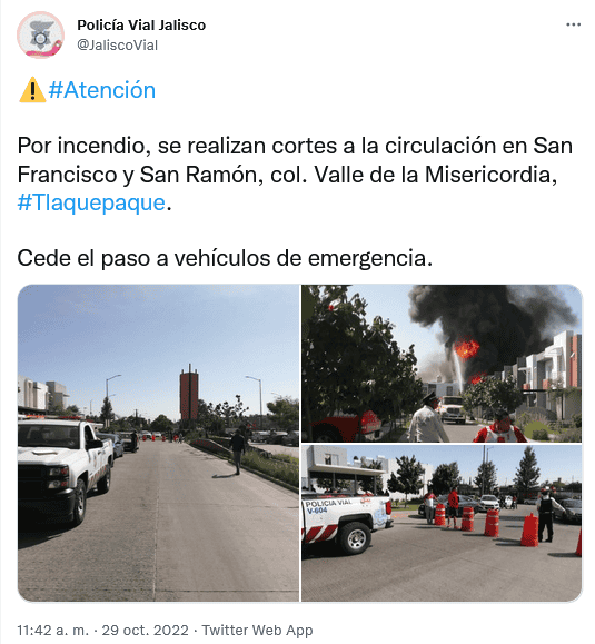 Un fuerte incendio se registra en una fábrica en Valle de la Misericordia en el municipio de Tlaquepaque. La columna se observa desde varias zonas de la metrópoli.El incendio es dentro de una fábrica de químicos, entre las calles San Ramón y San Francisco."Personal atiende incendio en una bodega en la calle San Ramón y San Francisco en Valle de la Misericordia. Evite la zona", recomienda la Dirección de Protección Civil de Tlaquepaque.A través de sus redes sociales, la Policía Vial informa que se realizan cortes a la circulación en San Francisco y San Ramón, col. Valle de la Misericordia, debido al siniestro. OF