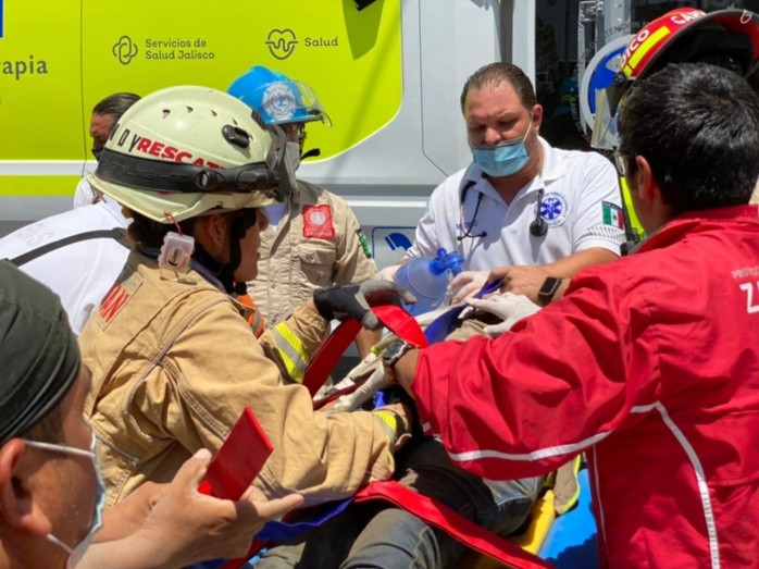 Un hombre, de aproximadamente 19 años, fue rescatado por personal de Protección Civil y Bomberos de Zapopan luego de que cayó a una zanja de un colector. Según se informó, trabaja en la obra."Quedó sepultado a la altura del techo. Se hicieron las maniobras para el apuntalamiento para localizar y sacar a la persona, que se encuentra en estado de regular a grave. Por el tiempo que estuvo presionado en el lugar, se tienen que descartar lesiones graves", detalló el primer oficial, Prisciliano González Castañeda.Añadió que el joven ya es atendido por personal de Servicios Médicos municipales. Además, que sus compañeros de obra fueron los primeros respondientes y quienes lograron descubrir su cabeza para evitar su asfixia."Al momento del rescate, no contaban con las medidas de seguridad adecuadas, es decir, el señalamiento y apuntalamiento. Ya en su momento, gestión integral de riesgos hará la inspección y determinará la responsabilidad", afirmó.El rescate duró aproximadamente 40 minutos y participó la unidad canina, así como personal de Cruz Verde, policía municipal y Protección Civil del Estado.NR