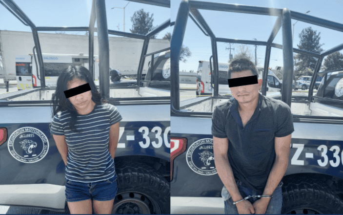 Tras una persecución que inició a la altura del fraccionamiento Bonanza, en acueducto San Agustín, oficiales de la Policía Municipal de Tlajomulco detuvieron a una mujer y a un hombre por abordar un vehículo con reporte de robo, portación de arma de fuego, cartuchos útiles y posesión de droga.En primera instancia, el vehículo,que tenía reporte de robo desde el 1 de marzo, fue detectado por el sistema cuando circulaba sobre Carretera a Morelia a la altura del Condominio Industrial Santa Cruz, en Santa Cruz de Las Flores, en sentido hacia Guadalajara.El operativo de búsqueda y localización después lo ubicó a la altura del fraccionamiento Bonanza, donde se les marcó el alto, sin embargo, el conductor aceleró su marcha para intentar huir, por lo que inició la persecución.Después, sobre la avenida López Mateos Sur al cruce de la calle Ramón Corona, el vehículo se detuvo, por lo que el oficial descendió de su motocicleta y, al intentar detener al conductor, éste aceleró de nuevo e, incluso, arrolló al uniformado y le causó una posible fractura de rótula.La persecución continuó a la altura del Club de Golf Santa Anita, mientras que el conductor del vehículo realizó varias detonaciones de arma de fuego contra una unidad oficial.Al repeler la agresión, se lesionó al hombre en la extremidad inferior izquierda, con lo que lograron interceptar sobre la avenida López Mateos Sur al cruce de la calle Las Moras, en la colonia Santa Anita.Cristóbal Omar N de 27 y a María Susana N de 27 años de edad fueron puestos a disposición del Ministerio Público.NR