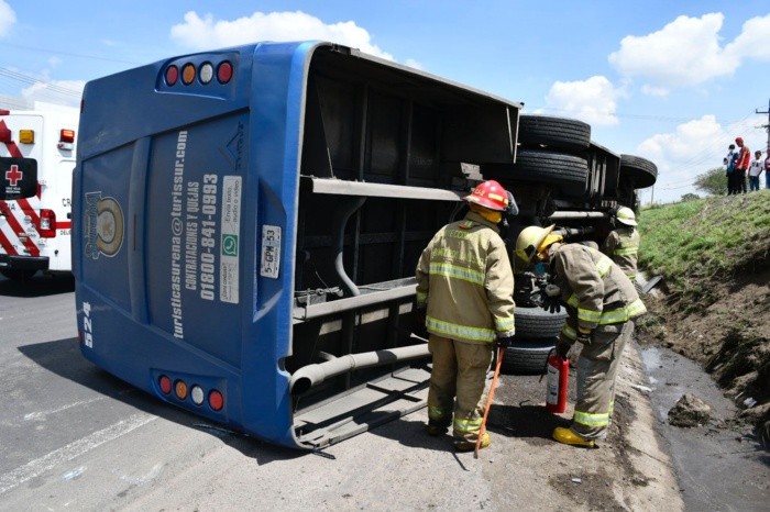 Un camión de transporte de personal se volcó en la carretera a Chapala- Guadalajara, en el municipio de Ixtlahuacán de los Membrillos.La Unidad Estatal de Protección Civil y Bomberos de Jalisco (UEPCBJ) informó que, de manera preliminar, hay un saldo de 10 pasajeros lesionados de leves a regulares, empleados de una empresa privada.Osvaldo Zavala, director de operaciones de la Unidad, informó que el camión chocó con el paredón y se volcó, dejando pasajeros lesionados que fueron trasladados al Hospital Arboledas en Guadalajara.GC
