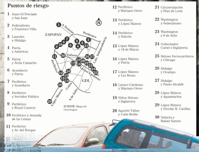 A unos días de que comience la temporada de lluvias, (el Servicio Meteorológico Nacional prevé que en Jalisco el temporal inicie formalmente a mediados de junio y termine en noviembre), en la Zona Metropolitana de Guadalajara (ZMG) hay al menos 30 pasos a desnivel que ante una tormenta se vuelven peligrosos para los habitantes. Esto de acuerdo con el Mapa de Georiesgos elaborado por el Departamento de Geografía de la Universidad de Guadalajara (UdeG) y por la Unidad Estatal de Protección Civil y Bomberos Jalisco (UEPCBJ). Luis Valdivia, quien es investigador de la casa de estudios, dijo que 19 de estos túneles son considerados de alto y muy alto riesgo, ya que en instantes pueden alcanzar altos niveles de agua. Entre estos destacan los de Federalismo y Washington, Niños Héroes e Inglaterra, Héroes Ferrocarrileros y la calle Chicago, Servidor Público y Periférico, así como Mariano Otero y Periférico. “En 2023, la inundación más peligrosa en la ciudad fue la que se presentó en septiembre en el paso a desnivel de Servidor Público y Periférico, donde murieron dos personas. Desde entonces establecimos la clasificación de los sitios más peligrosos”, compartió el especialista. En esa ocasión referida, un adulto mayor y su enfermera quedaron atrapados a bordo de su coche en medio del agua, que superó los tres metros de altura. Tras ese hecho, las autoridades señalaron la posibilidad de instalar un sistema de alarmas en al menos ocho túneles para alertar a la ciudadanía. En ese entonces, el titular de la Secretaría de Infraestructura y Obra Pública (SIOP) del Gobierno estatal, David Zamora, comentó que se colocarían dispositivos automáticos para anunciar a los automovilistas de la anegación, de modo que evitaran esas vías. La dependencia mencionada indicó que los equipos están por llegar a la metrópoli para ser instalados. Sin embargo, no especificó en dónde ni cuándo. Este medio de comunicación confirmó que en el túnel donde murieron el adulto mayor y la enfermera todavía no hay ningún aparato en funcionamiento. A través de un sondeo, usuarios de las redes sociales llamaron a las autoridades a que incrementen las acciones de prevención para evitar muertes en el próximo temporal, como cierres por parte de la Policía Vial y hasta la implementación de semáforos o pantallas digitales que señalen el nivel del agua. “Lo ideal sería agentes viales cerrando el paso. Aunque también debe se prevalecer la prudencia del conductor”, dijo Luis Ricardo. “Lo lógico sería que los tránsitos cerraran esos pasos a su discreción. El automovilista no sabe los niveles de riesgo de todos los pasos, menos si no es de la zona”, agregó Arnoldo Ramos. “La medida más económica es poner indicadores de nivel de agua”, resaltó Rogelio Campos. La Agencia Metropolitana de Infraestructura para la Movilidad (AMIM), órgano de la Secretaría de Transporte, informó que mantiene activos nueve sensores de inundación en pasos a desnivel. Explicó que estos funcionan por medio de un láser que mide la acumulación de agua. Cuando se detecta un nivel inusual, envía una señal a la Policía Vial para que tome cartas en el asunto. Estos dispositivos se encuentran en Ávila Camacho y Patria, Patria y Retorno Emiliano Zapata, López Mateos y Florencia, López Mateos y Avenida México, Lázaro Cárdenas y Mariano Otero, López Mateos y entrada al Colegio Guadalajara, Mariano Otero y Ámbar (Plaza del Sol), López Mateos y Moctezuma, y López Mateos y Loma Bonita. Ante esta situación, Carlos Hernández Solís, miembro del Consejo Consultivo del Agua, consideró que, antes de determinar cualquier intervención, las autoridades deben hacer un análisis sobre los sistemas de bombeo, pues son una herramienta para combatir las inundaciones. Rafael Bravo, titular del Colegio de Profesionistas de la Movilidad Urbana, acentuó que además se debe poner en la balanza la instalación de dispositivos de rápida vaporización del agua, o de plumas para evitar el paso de los vehículos cuando el nivel del agua comienza a crecer. “También hay que pensar a mediano y a largo plazo para solventar todo esto que estamos viviendo, no solamente cada dos o tres años estar dándonos una pequeña aspirina para el dolor. Debe buscarse la raíz del problema con los análisis y las soluciones necesarias”, remató. En agosto del año pasado, y con datos del Instituto Metropolitano de Planeación (Imeplan), esta casa editorial publicó que en el paso a desnivel de Niños Héroes e Inglaterra se ha documentado que el agua llega hasta los seis metros. Es la altura más alta registrada en la metrópoli.