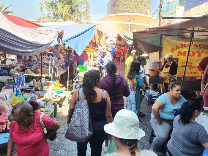 Por la concentración de personas que generan, la deficiente aplicación de medidas sanitarias y ubicarse en colonias de alta incidencia; los tianguis de la Zona Metropolitana de Guadalajara (ZMG) están entre los lugares de mayor riesgo de contagio de COVID-19, sólo después de hospitales y el transporte público. De acuerdo con un estudio realizado por el Centro de Análisis Estratégico Empresarial (CAEE) de la Cámara de Comercio de Guadalajara, los tianguis son foco de propagación del virus pues son puntos de encuentro social que generan aglomeración. Además de la zona oriente de Guadalajara, la instalación de los puestos coincide con las colonias de mayor incidencia de la enfermedad en puntos como el poniente, centro y norte de Zapopan en colonias como Ciudad Granja, La Tijera, Arcos de Zapopan, Santa Margarita, Lomas de Zapopan, Constitución y Tabachines. También en Atemajac, Jardines Alcalde, Oblatos, Los Arrayanes, Tonalá Centro, Corona-Tlaquepaque, Colón-Polanco. La revisión hecha por el CAEE destaca que ha sido complicado aplicar de manera efectiva las medidas sanitarias en tianguis, que en su mayoría no cuentan con puntos de acceso bien delimitados; falta vigilancia del cumplimiento de filtros sanitarios; control del número de personas y no cuentan con áreas de descanso o zonas de seguridad para evitar aglomeraciones. Los espacios con los que cuentan para el tránsito peatonal son reducidos. Al ubicarse al aire libre, no son susceptibles de poder recibir una sanitización frecuente y eficiente. Sólo algunos de los tianguis más grandes han sido suspendidos de forma temporal durante la contingencia, como sucedió en El Baratillo y el de Polanco. Los siete días de la semana se instalan tianguis en municipios de la ZMG, se calcula que hay entre 97 mil y 99 mil 700 puestos distribuidos en 346 tianguis. Wl 45 por ciento de los puestos se dedican a la venta de ropa y alimentos y emplean a cerca de 370 mil personas entre propietarios y trabajadores. El domingo se instalan 58 tianguis en la ZMG (23 mil 034 puestos) los lunes 55 (nueve mil 164 puestos), martes 48 tianguis (ocho mil 898 puestos), miércoles 48 (nueve mil 632 puestos), jueves 52 tianguis (13 mil 649 puestos), viernes 41 tianguis (ocho mil 118 puestos) y sábados 44 tianguis (ocho mil 361 puestos).jb